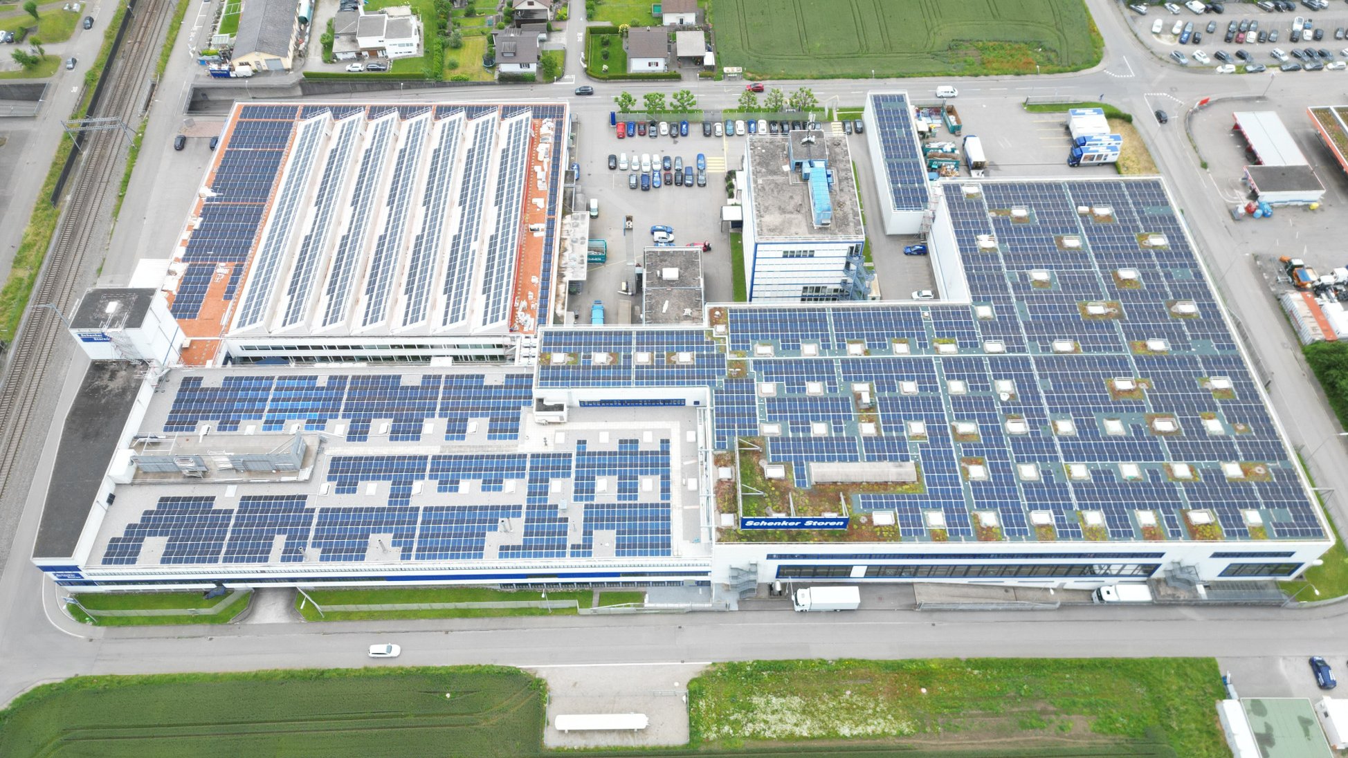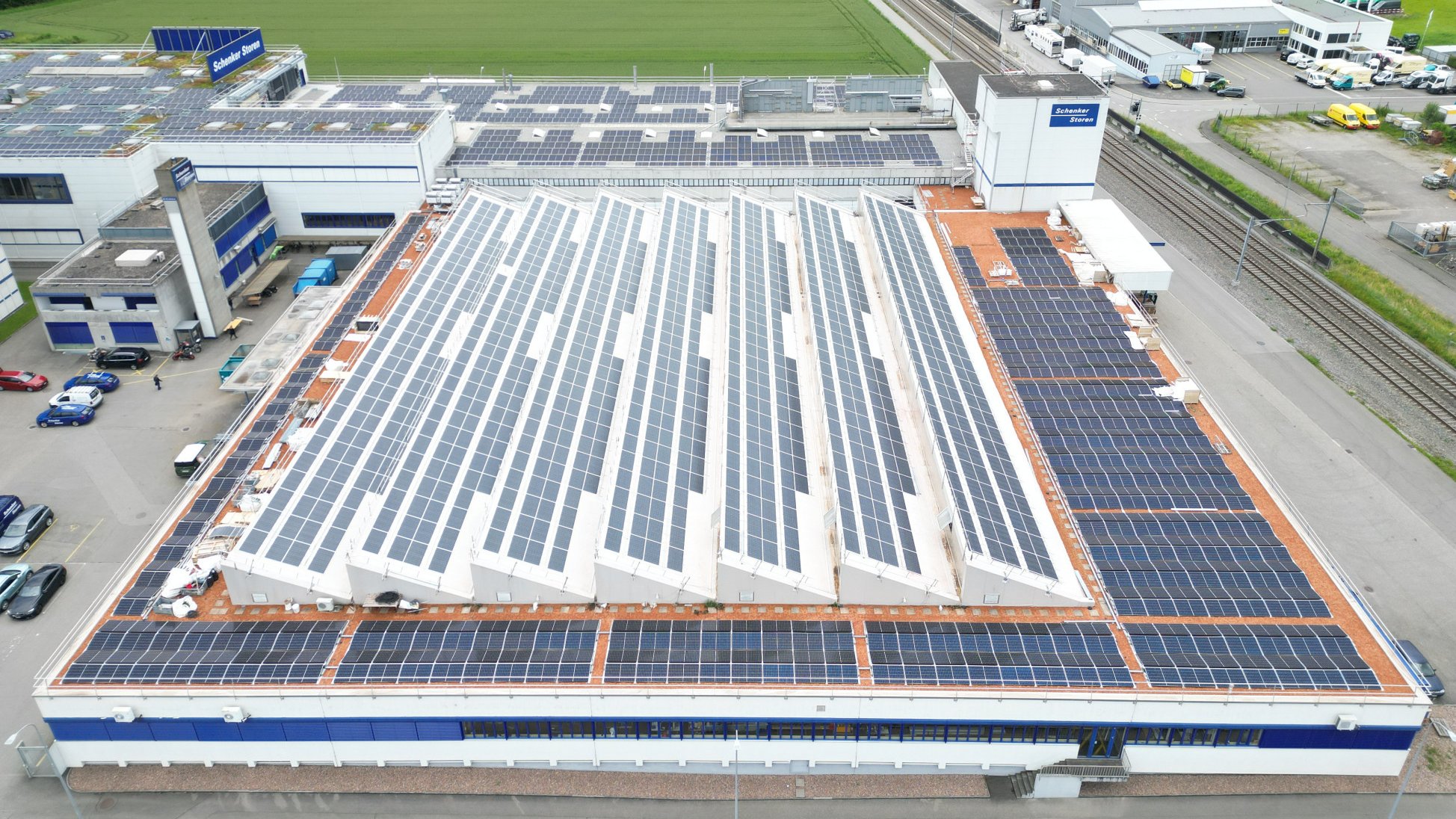 Seit Juni 2024 ist unser firmeneigenes Solarkraftwerk am Hauptsitz in Schönenwerd in Betrieb – ein sichtbares Bekenntnis zu einer klimafreundlichen Zukunft. Rund 4’220 Solarmodule erstrecken sich über nahezu alle Dachflächen unseres Areals.