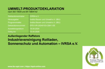 Umweltproduktdeklaration Aussenliegender Raffstore