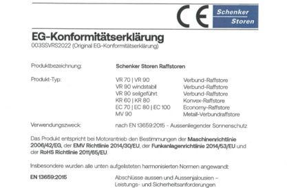 Konformitätserklärung Raffstoren