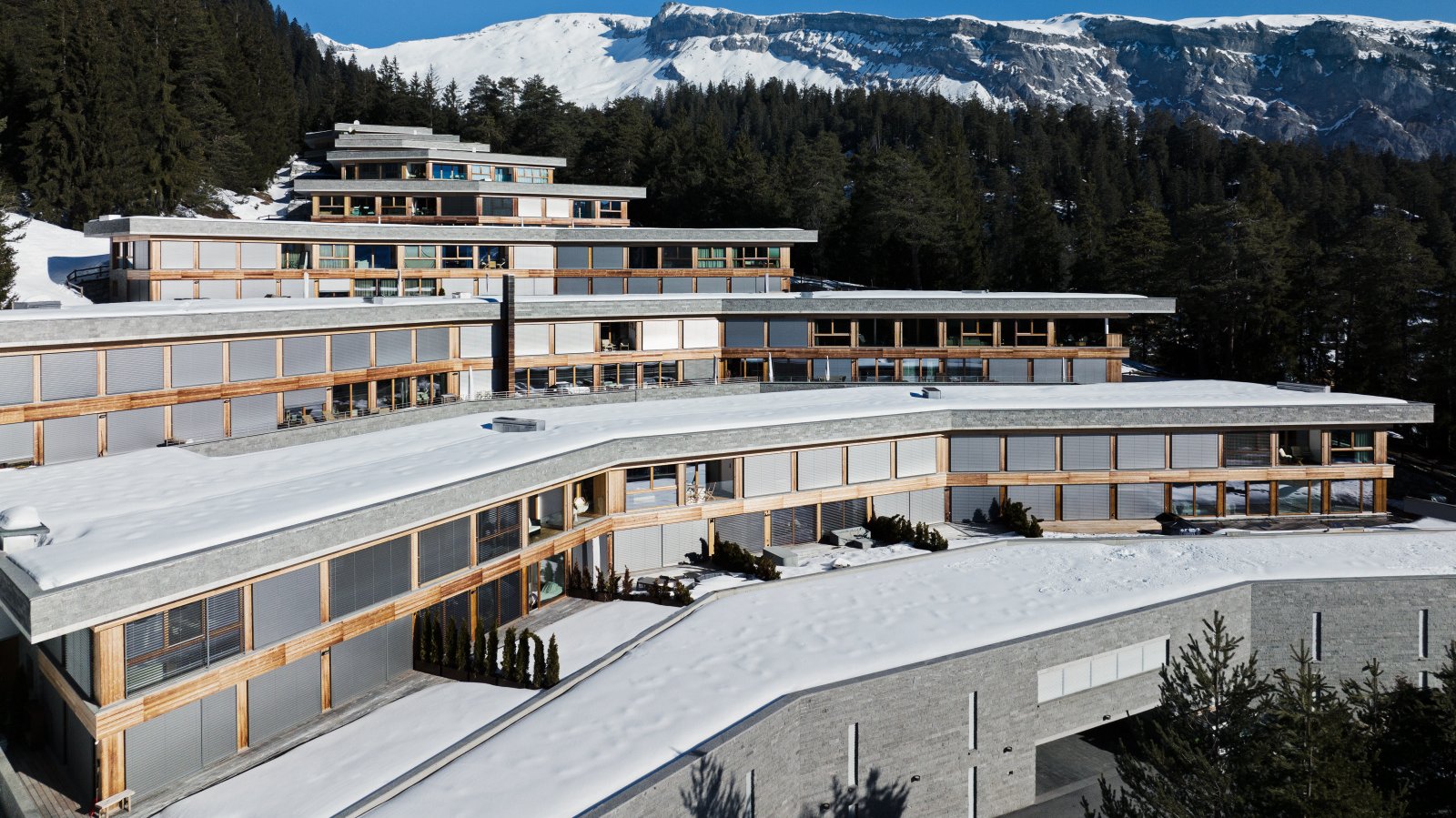 Hoch über Laax-Murschetg thront die traumhafte Ferienresidenz «Cuolm Liung» mit insgesamt 94 Wohnungen und 15 Etagen, die man unter anderem mit einem Schrägaufzug erreicht. Terrassiert in die Landschaft gebettet und nach Süden ausgerichtet besticht die Überbauung mit einer unvergleichlichen Aussicht und ideal besonnten Wohnungen. Die elegante Architektur übersetzt die natürlichen Qualitäten der Umgebung mittels hochwertigen Materialien wie Naturstein und Lärchenholz.