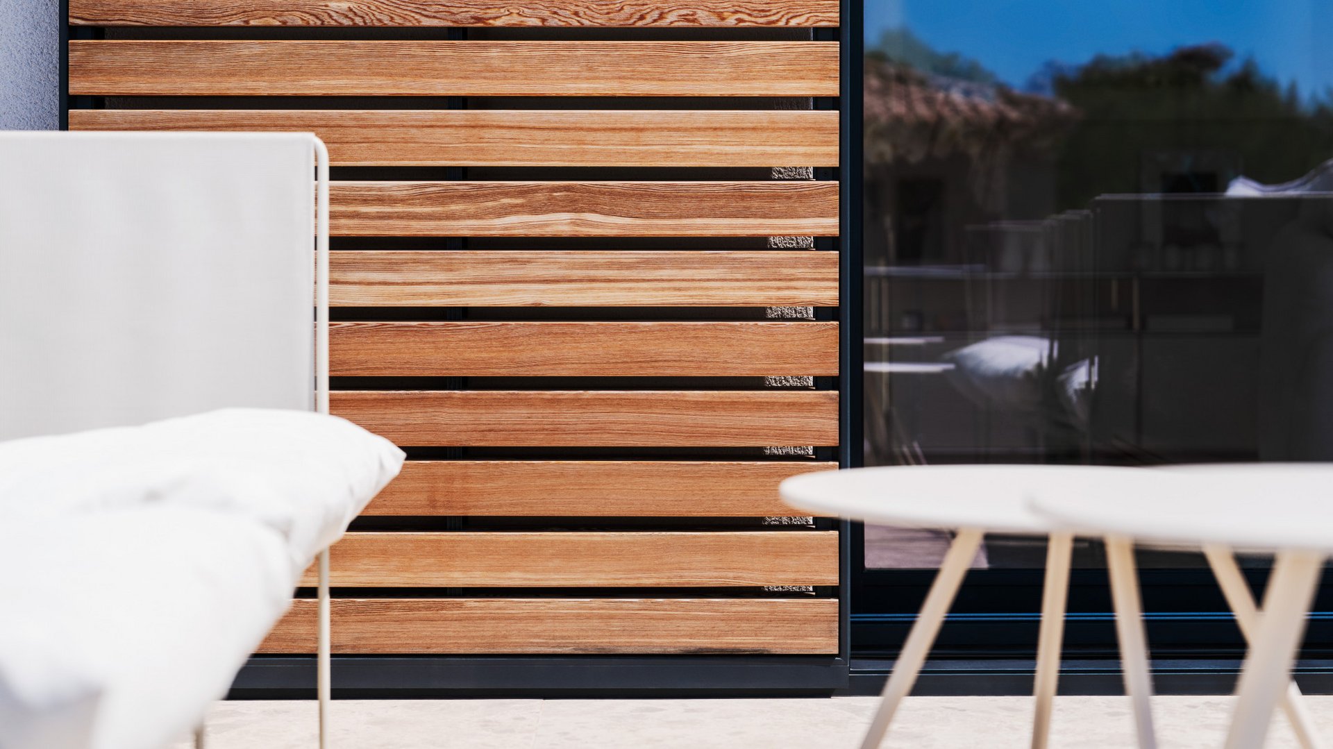 Die Wahl fiel auf Schiebeläden des Typs NATURE SL12 mit horizontalen Lamellen aus Lärchenholz – drei Flügel im Obergeschoss, vier im Erdgeschoss. Sie ermöglichen dank optimalen Zwischenabständen eine grosszügige Belüftung in geschlossenem Zustand. Gleichzeitig sorgen sie für angenehme Lichtverhältnisse im Innenraum. Und nicht zuletzt bieten die Lamellen auch den gewünschten Sichtschutz von aussen.