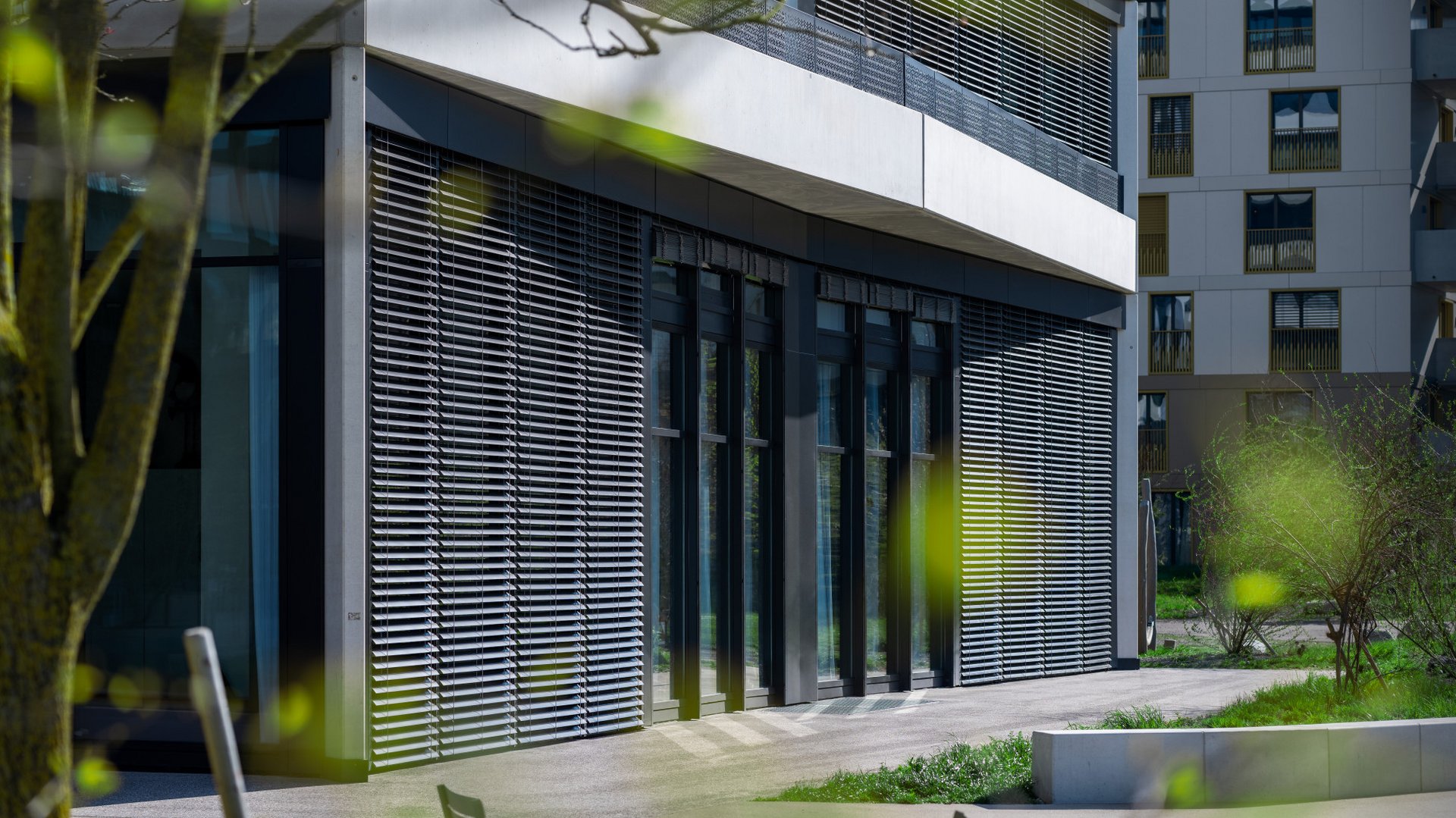 So konnte das Projekt, bei dem 7110 Verbund-Raffstoren VR 90 an den Wohntürmen und 24 Windstabile Vertikalstoffstore VSe ZIP am Pavillon montiert wurden, nach Abnahmen durch Bauleitung und Bauherrschaft erfolgreich abgeschlossen werden.