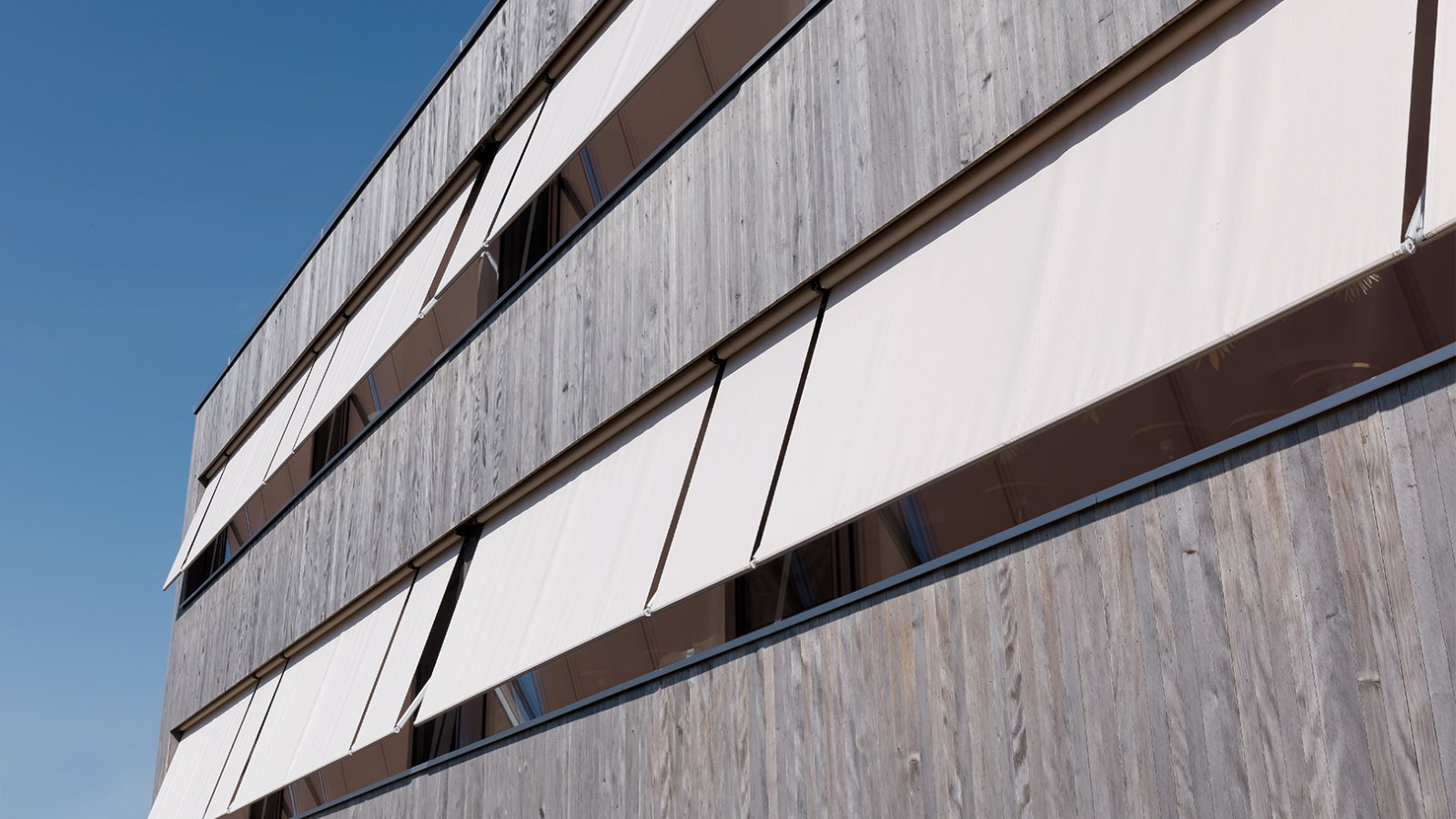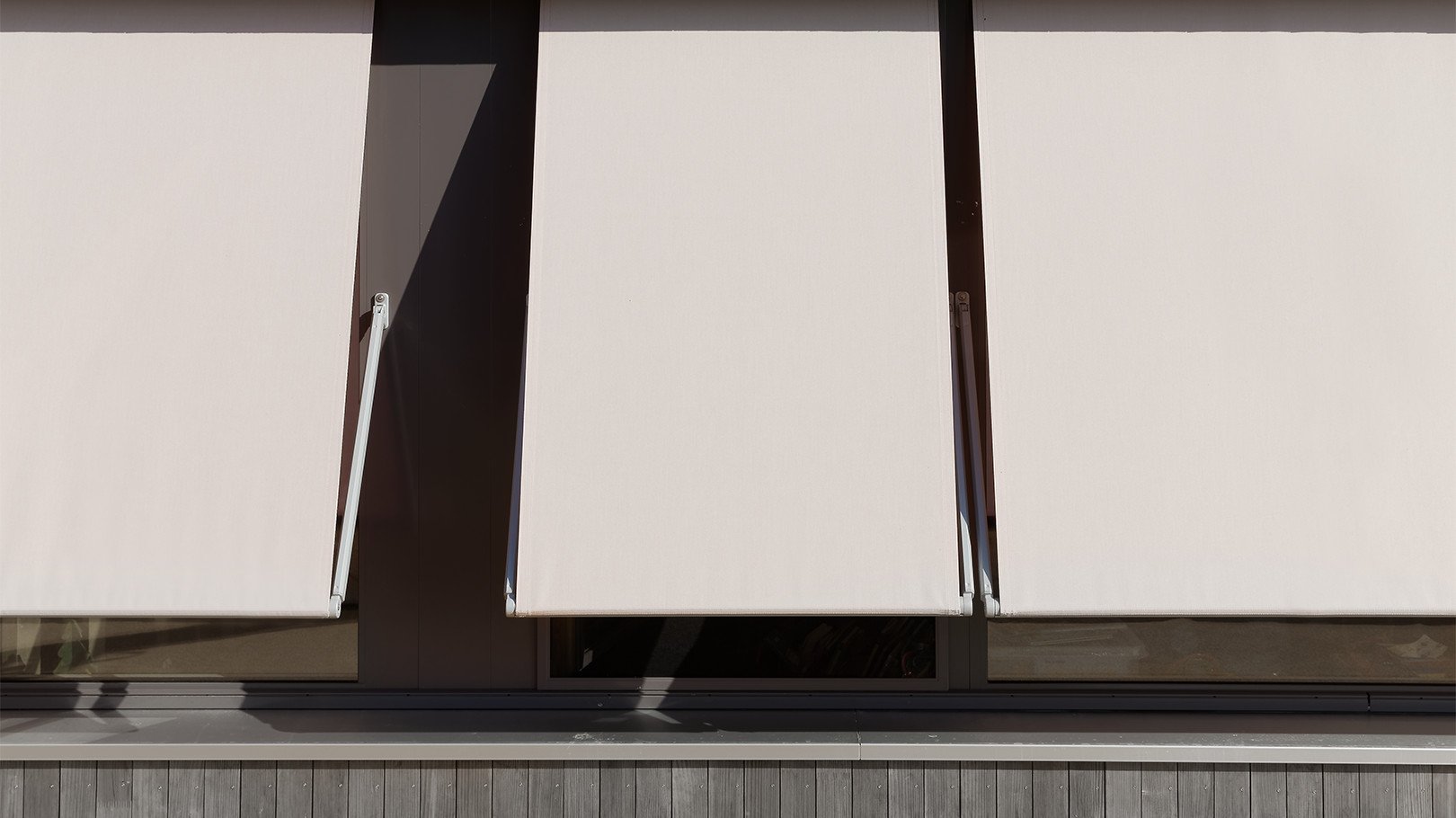 Unsere AM 150 eignet sich für grössere Fensterrahmen und Flächen. Sie ist kuppelbar mit bis zu drei Anlagen und erreicht damit eine maximale Fläche von 20 m2. Trotzdem sind Fallarme und Stoffstab dezent und filigran gehalten.