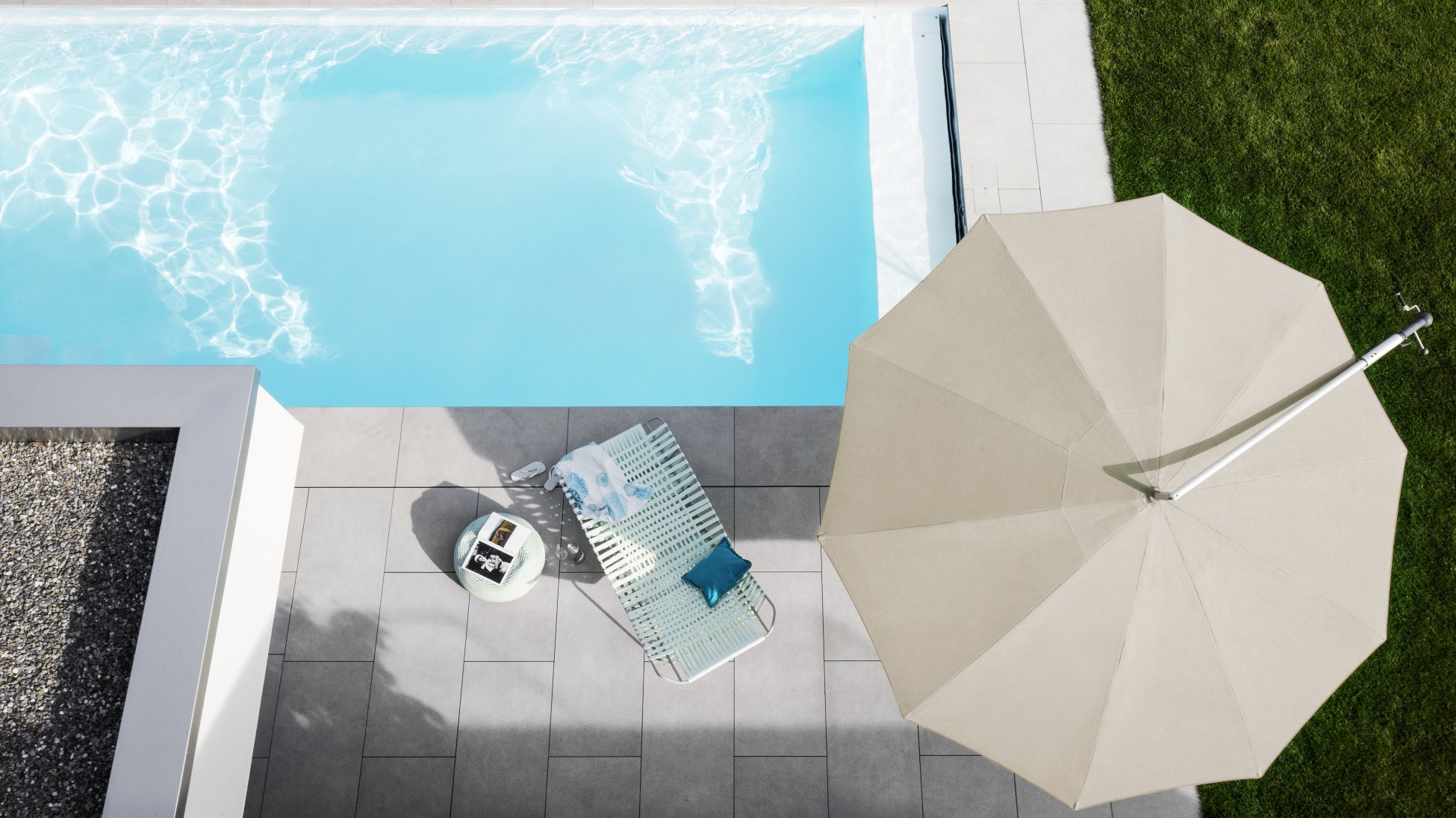 Der Ampelschirm Mezzo ist der Schirm für maximale Freiheit im Aussenbereich. Durch den seitlichen Mast bleibt die Fläche unter dem Schirm vollständig frei nutzbar, wodurch sich der Schatten flexibel an Möblierung und Nutzung anpassen lässt. Dreh‑, schwenk‑ und sogar senkrecht stellbar, bietet der Mezzo nicht nur optimalen Sonnenschutz von oben, sondern auf Wunsch auch seitlichen Sichtschutz – präzise, vielseitig und alltagstauglich.