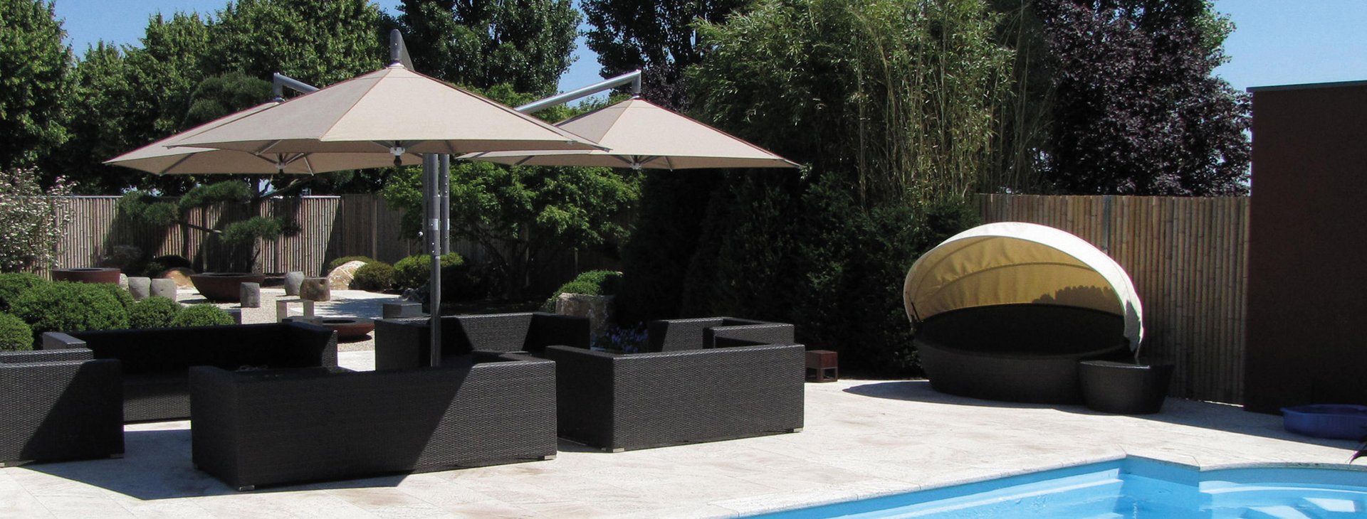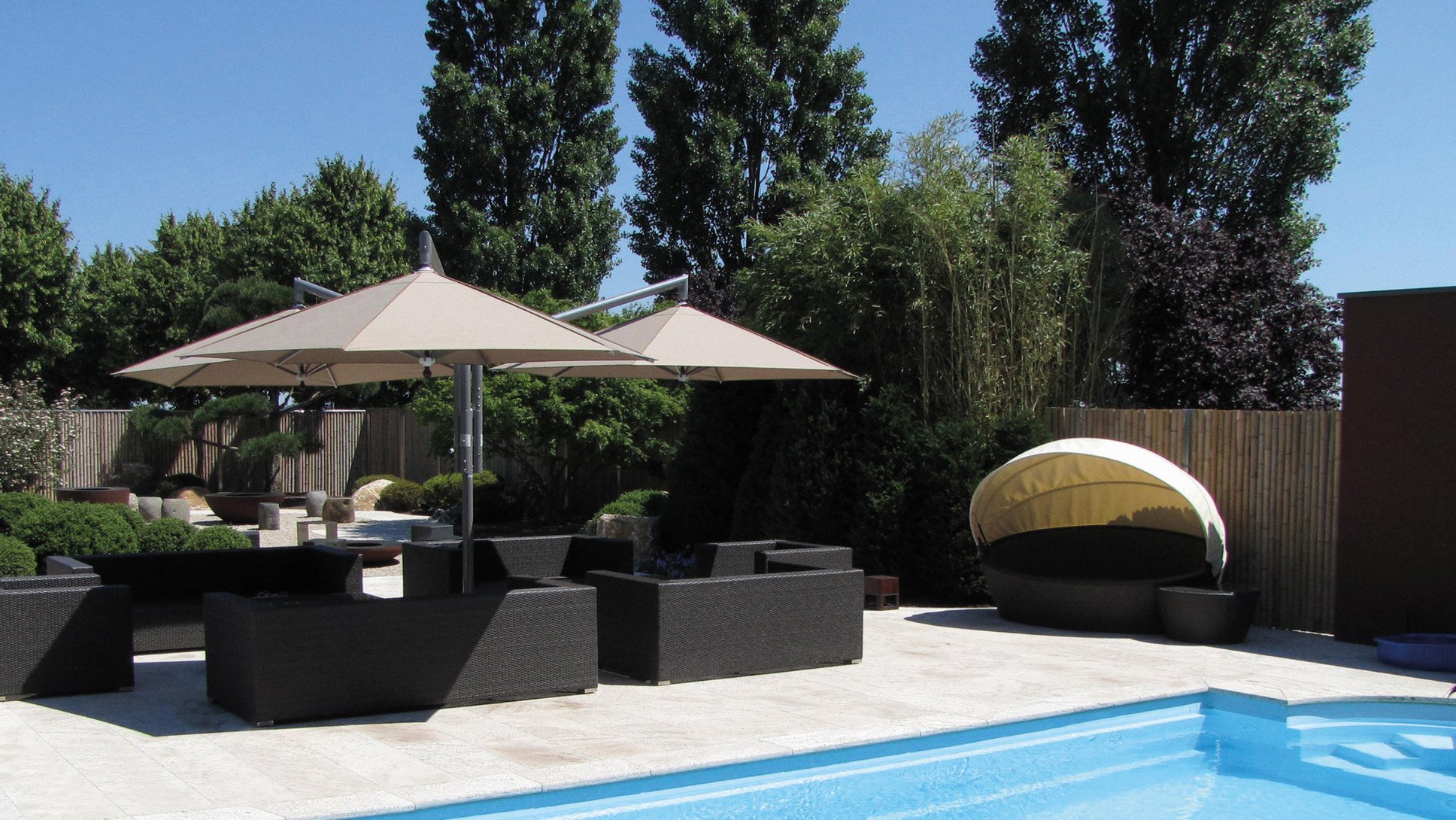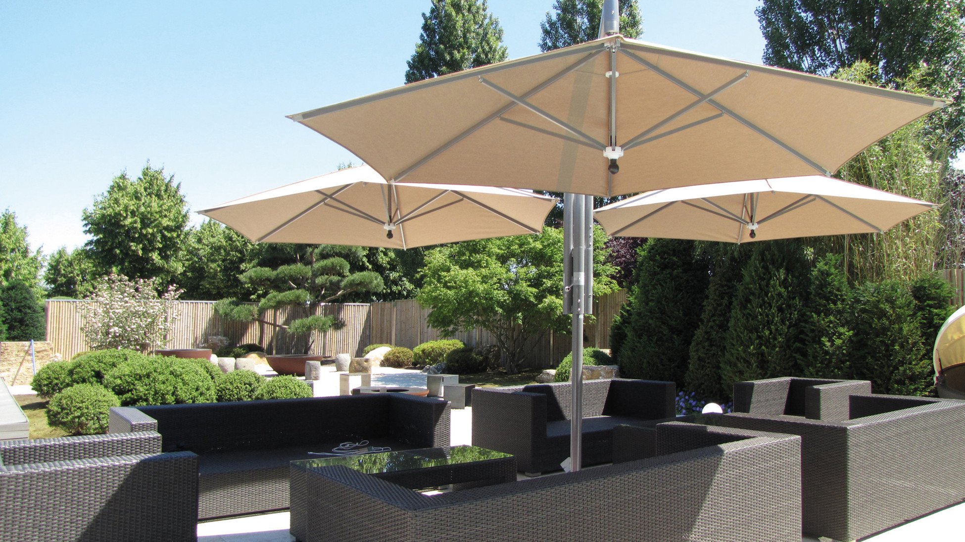 Jede Schirmgrösse verfügt dabei über das entsprechende Fundament und das richtige Ballastgewicht.