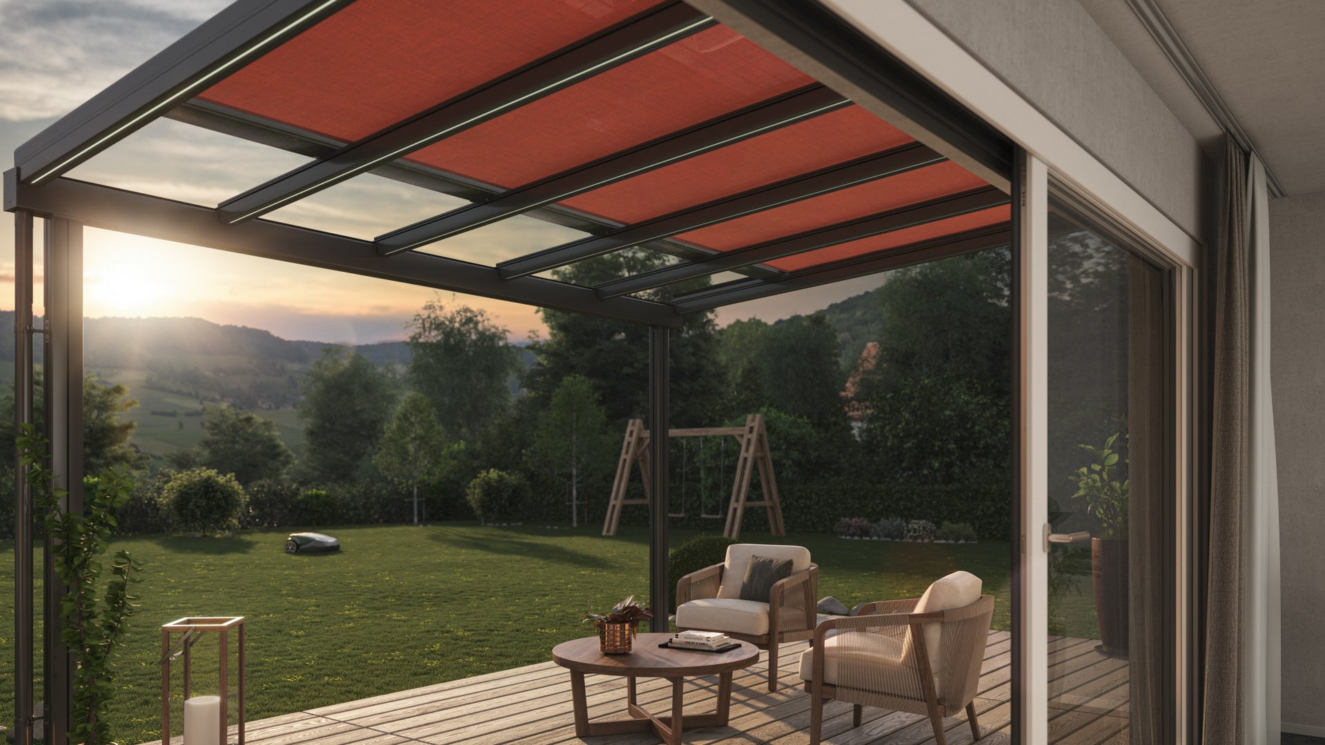 Für unser Terrassendach steht eine Vielzahl von Optionen zur Auswahl, so kann das Produkt optimal Ihren Ansprüchen und Wünschen angepasst werden. Zahlreiche Stoffdesigns und eine grosse Auswahl an Gestellfarben unterstützen Sie dabei, Terrassen, Balkone und Gartensitzplätze attraktiv zu gestalten. Für mehr Komfort können unsere Produkte über unsere cleveren Smart-Home-Lösungen gesteuert werden. Unsere Vielfalt an Sensormöglichkeiten für Sonne, Wind und Regen gewährleistet eine sichere und produktgerechte Bedienung. Immer mit dabei: Schweizer Qualität.