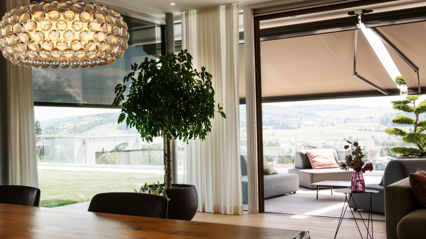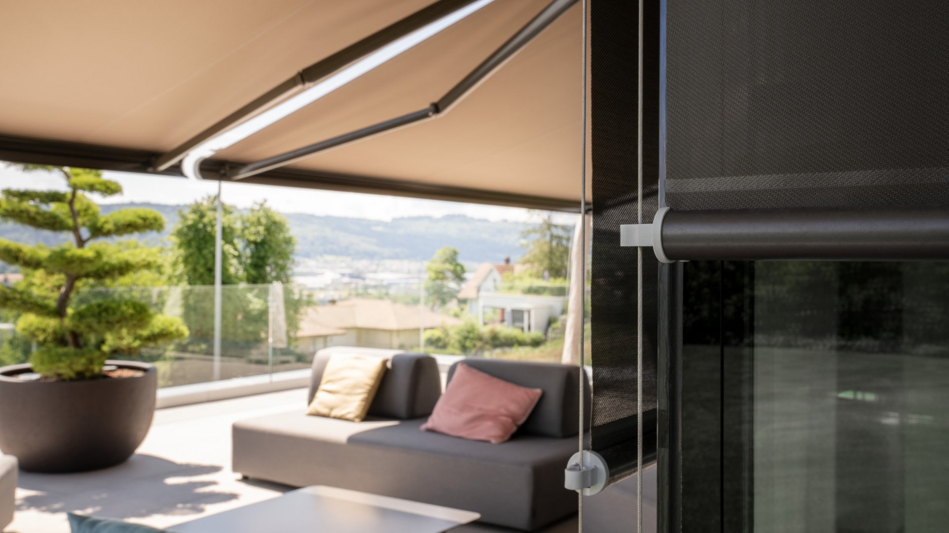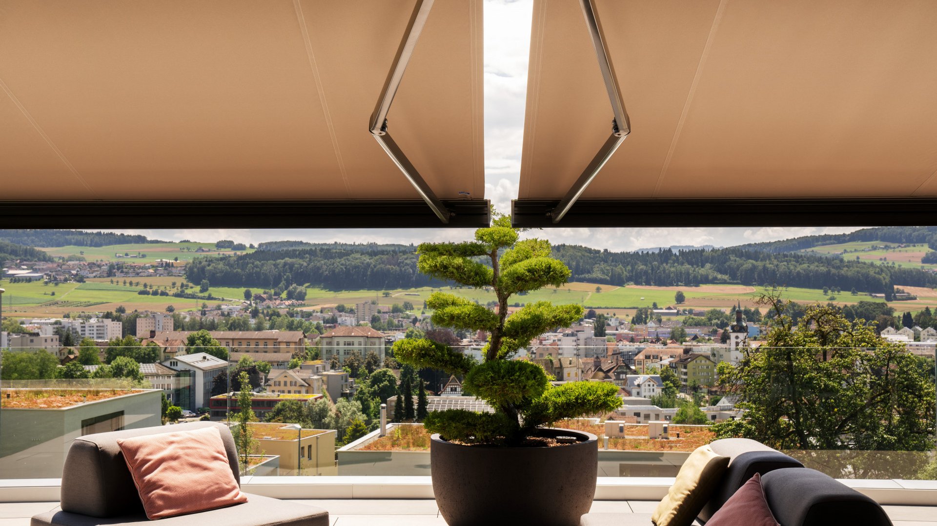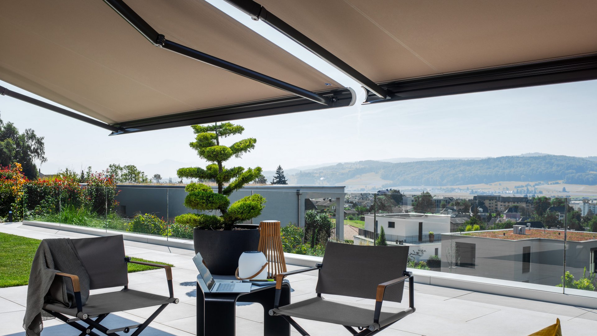 Für die Kassettenmarkise steht eine Vielzahl von Optionen zur Auswahl, so kann das Produkt optimal Ihren Ansprüchen und Wünschen angepasst werden. Zahlreiche Stoffdesigns und eine grosse Auswahl an Gestellfarben unterstützen Sie dabei, Terrassen, Balkone und Gartensitzplätze attraktiv zu gestalten. Für mehr Komfort können unsere Produkte über unsere cleveren Smart-Home-Lösungen gesteuert werden. Unsere Vielfalt an Sensor-Möglichkeiten für Sonne, Wind und Regen gewährleisten eine sichere und produktgerechte Bedienung. Immer mit dabei: Schweizer Qualität.
