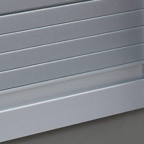 Flache formflexible Lamellen: Lamellenbreite 80 mm und Lamellenstärke ca. 0,32 mm. Die spezielle Prägung bei den Seilführungsstanzungen garantiert einen guten Lamellenschluss und seitlichen Halt. Dank den kunststoffummantelten Drahtseilen erfolgt eine einwandfreie Lamellenführung.