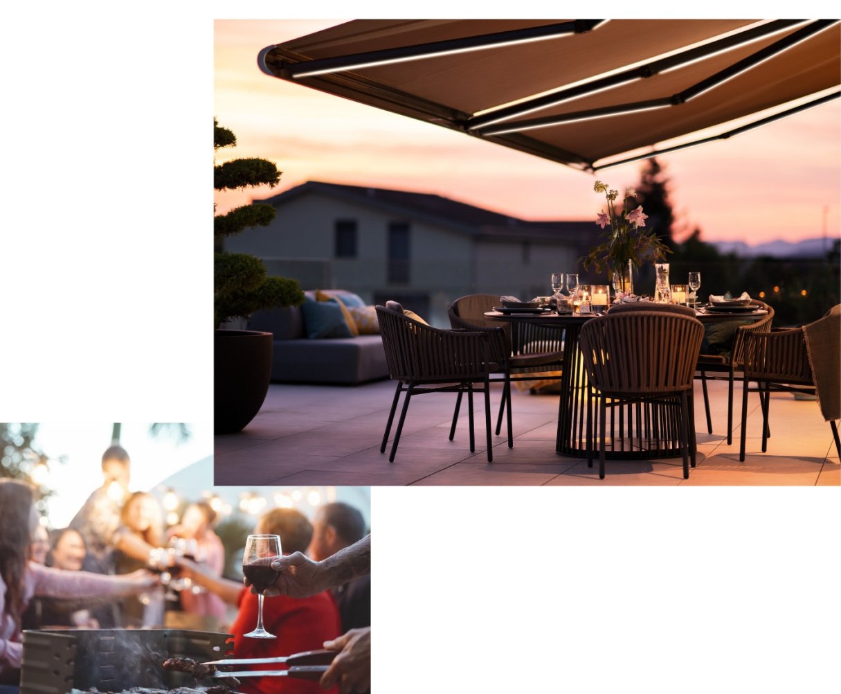 Vous pouvez d’ores et déjà vous réjouir de grillades sous le toit de terrasse, de bavardages autour de rafraîchissements sous la pergola ou de la lecture de votre livre préféré à l’abri du soleil sous le store banne.