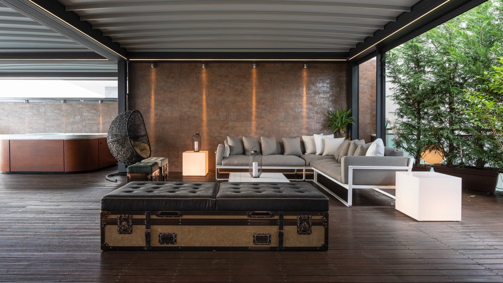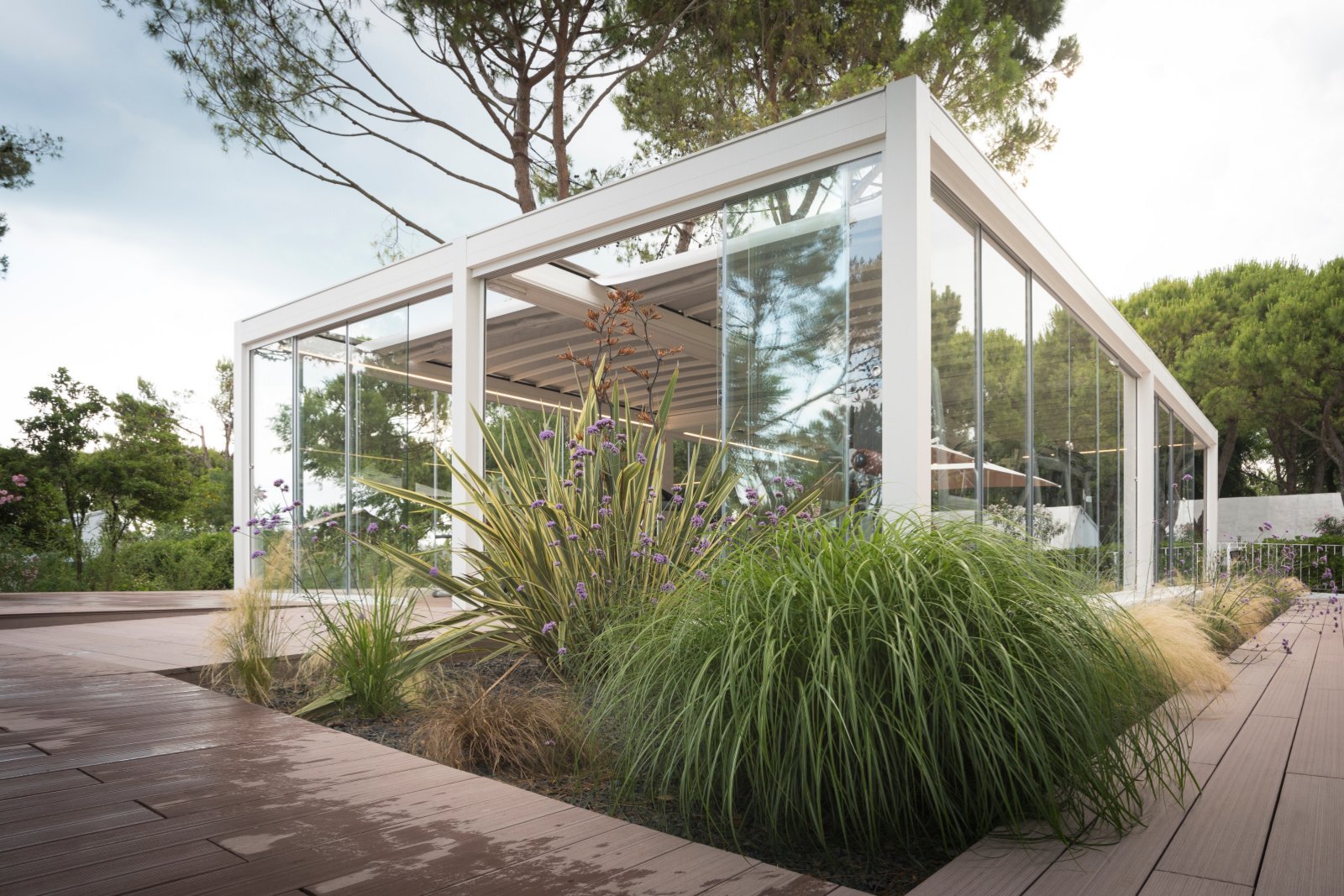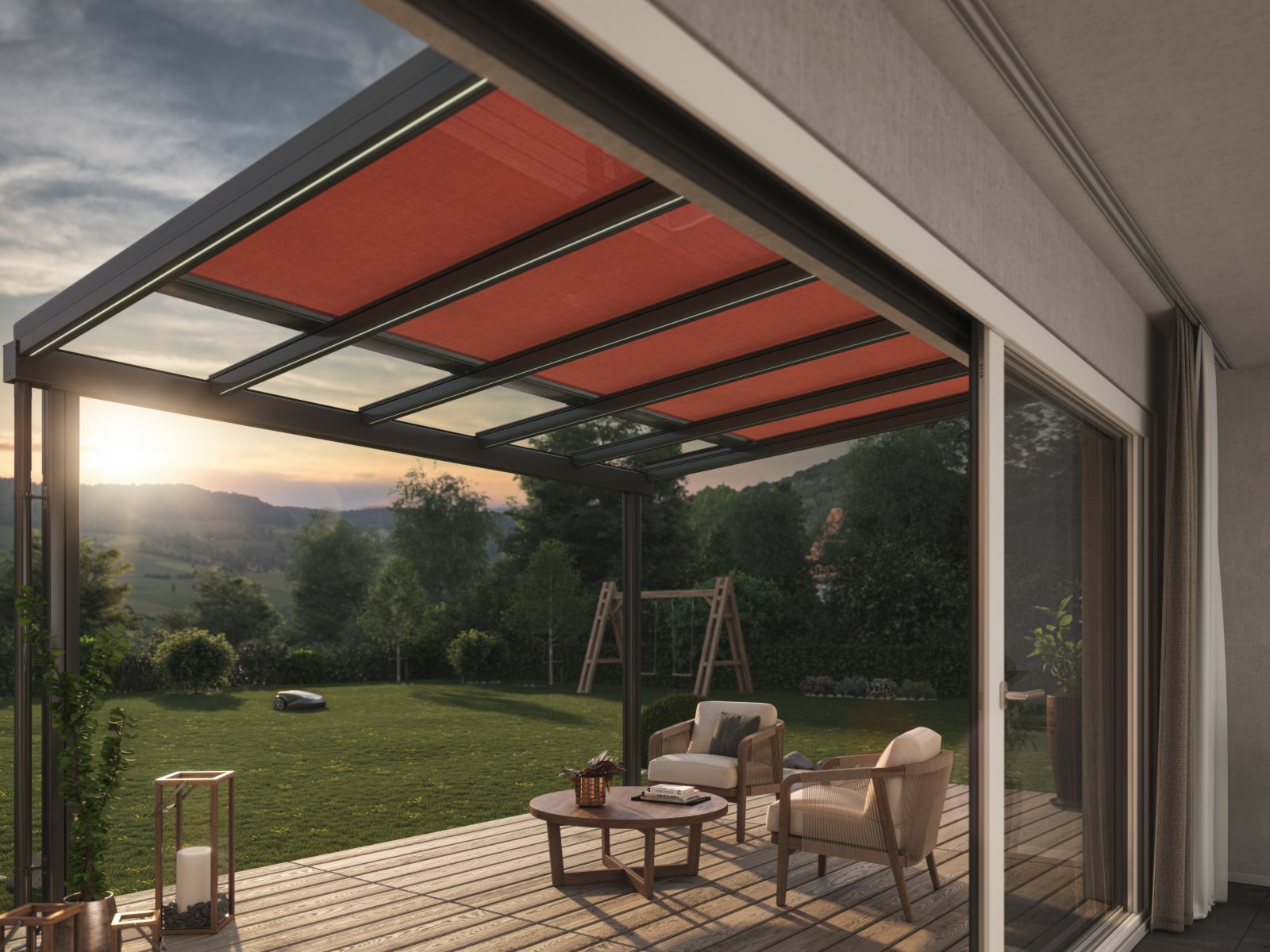 Le toit à lamelles compte parmi les solutions d’excellence car il crée des espaces de vie extérieurs supplémentaires. Il se laisse facilement intégrer directement dans le prolongement de la maison ou de manière indépendante dans le jardin grâce à son design élégant, sa robustesse et ses différentes dimensions. Il s’adapte aux maisons, aux immeubles ainsi qu’au secteur de la restauration. Le toit à lamelles de Schenker Storen est une installation produite en série avec une précision au millimètre près comprenant un toit et un thermo-poudré en quatre couleurs standard. Le toit ouvrant aéré et cependant étanche en lamelles d’aluminium scintille avec un raffinement technique grâce à l’éclaire LED avec variateur, commande motorisée, commande de lumière selon la direction des lamelles jusqu’à 135°, effets bioclimatiques selon la rotation des lamelles, etc. extension possible avec des vitrages latéraux, c’est-à-dire, avec des produits de protection solaire et visuelle.