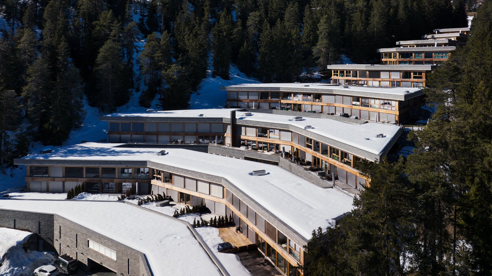 La magnifique résidence de vacances «Cuolm Liung», qui compte en tout 94 appartements et 15 étages que l’on atteint notamment avec un ascenseur incliné, trône sur les hauteurs de Laax-Murschetg. Aménagé en terrasses et niché dans le paysage, l’édifice bénéficie d’une exposition plein sud et séduit par sa vue incomparable et des appartements parfaitement ensoleillés. L’architecture élégante reflète les qualités naturelles environnantes par le biais de matériaux haut de gamme comme la pierre naturelle et le bois de mélèze.