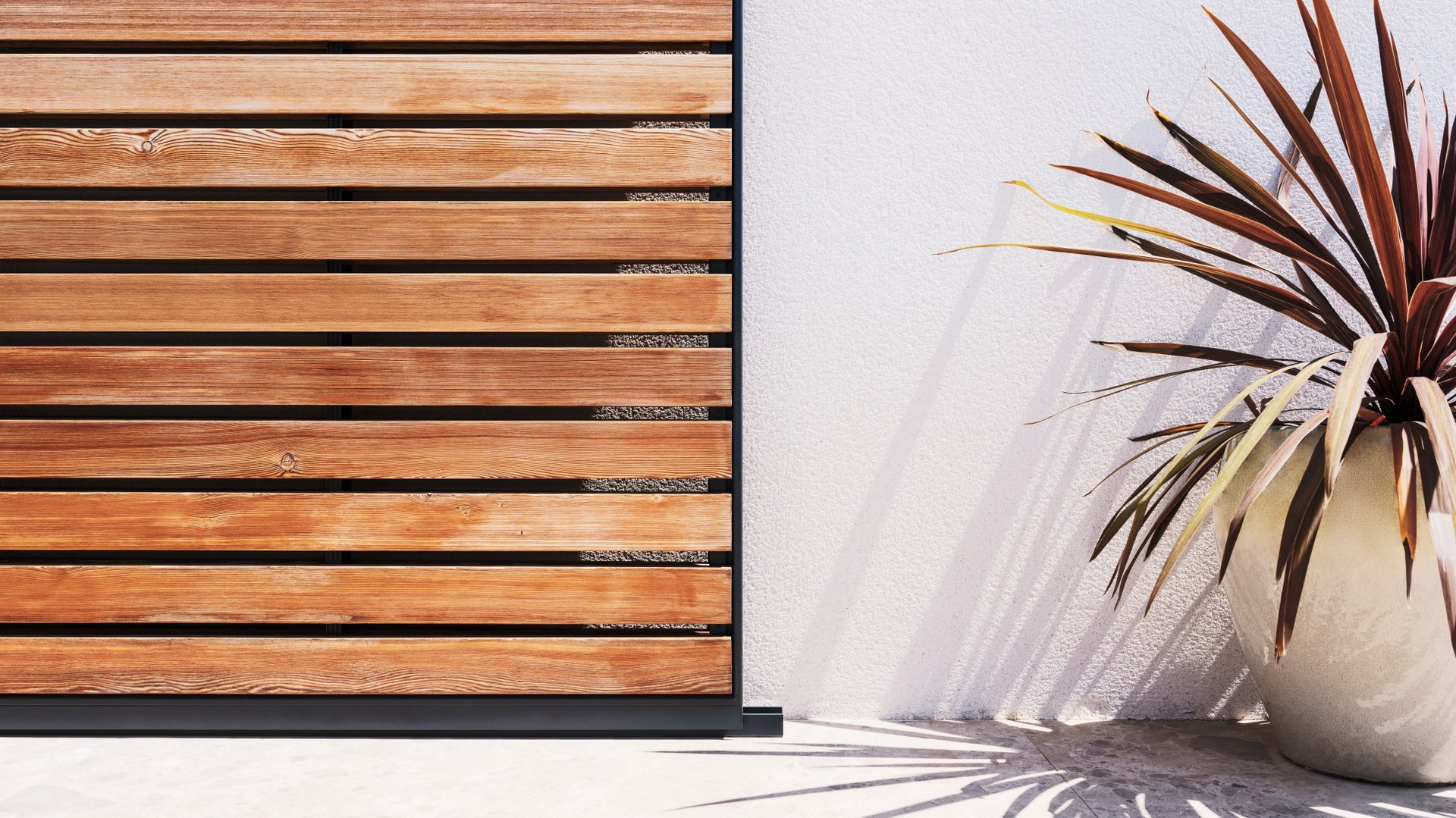 Les volets coulissants contribuent en outre au look moderne de la maison. Ils s’intègrent harmonieusement dans la façade avec leurs rails de guidage apparents et constituent un élément de design à part entière. Le mélèze des lamelles convainc non seulement sur le plan visuel mais aussi fonctionnel: il est extrêmement durable parce qu’indéformable et résistant aux intempéries. La construction robuste de toute l’installation rend superflus des systèmes de protection comme des anémomètres et permet d'assurer une excellente stabilité sans aucun claquement même par les vents les plus forts.