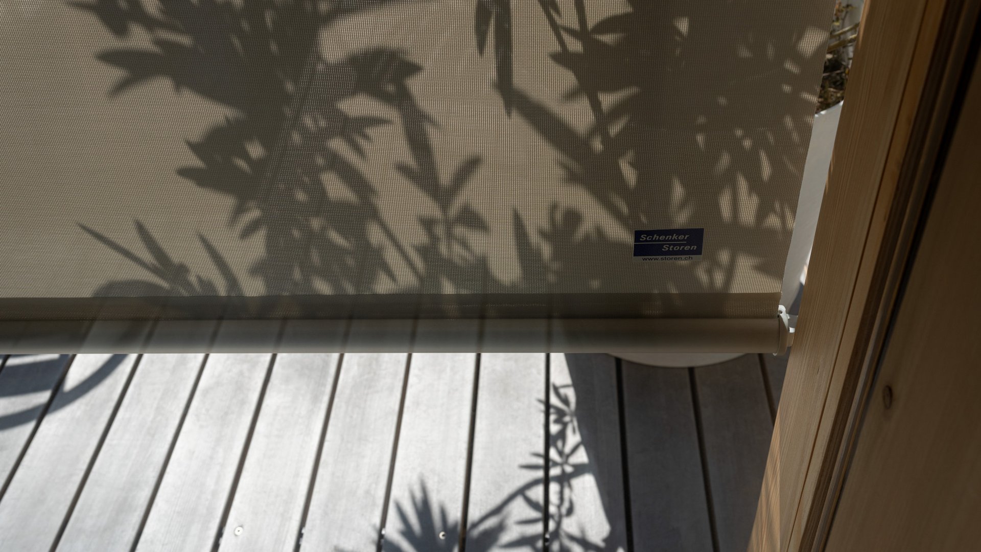 Un édifice spécial qui fait non seulement la part belle à un design exclusif mais aussi à une ambiance naturelle: cet immeuble remarquable dans le quartier zurichois de Witikon est entièrement construit en bois massif et assemblé sans colle ni métal. Seuls le socle et le fût de l’escalier sont en béton. Les murs ont été enduits d’argile pour assurer un climat intérieur aussi sain que possible. La façade habillée de lamelles en bois génère un effet tamisant attrayant; les parois filtrantes aux coins de la loggia créent quant à elles des jeux d’ombre et de lumière supplémentaires. C’est ici qu’intervient Schenker Storen en tant que spécialiste en conception de l’éclairage naturel: en proposant, en guise de solution d’ombrage, des stores en toile verticaux qui renforcent de manière optimale le jeu d’ombre et de lumière et l’atmosphère de bien-être.