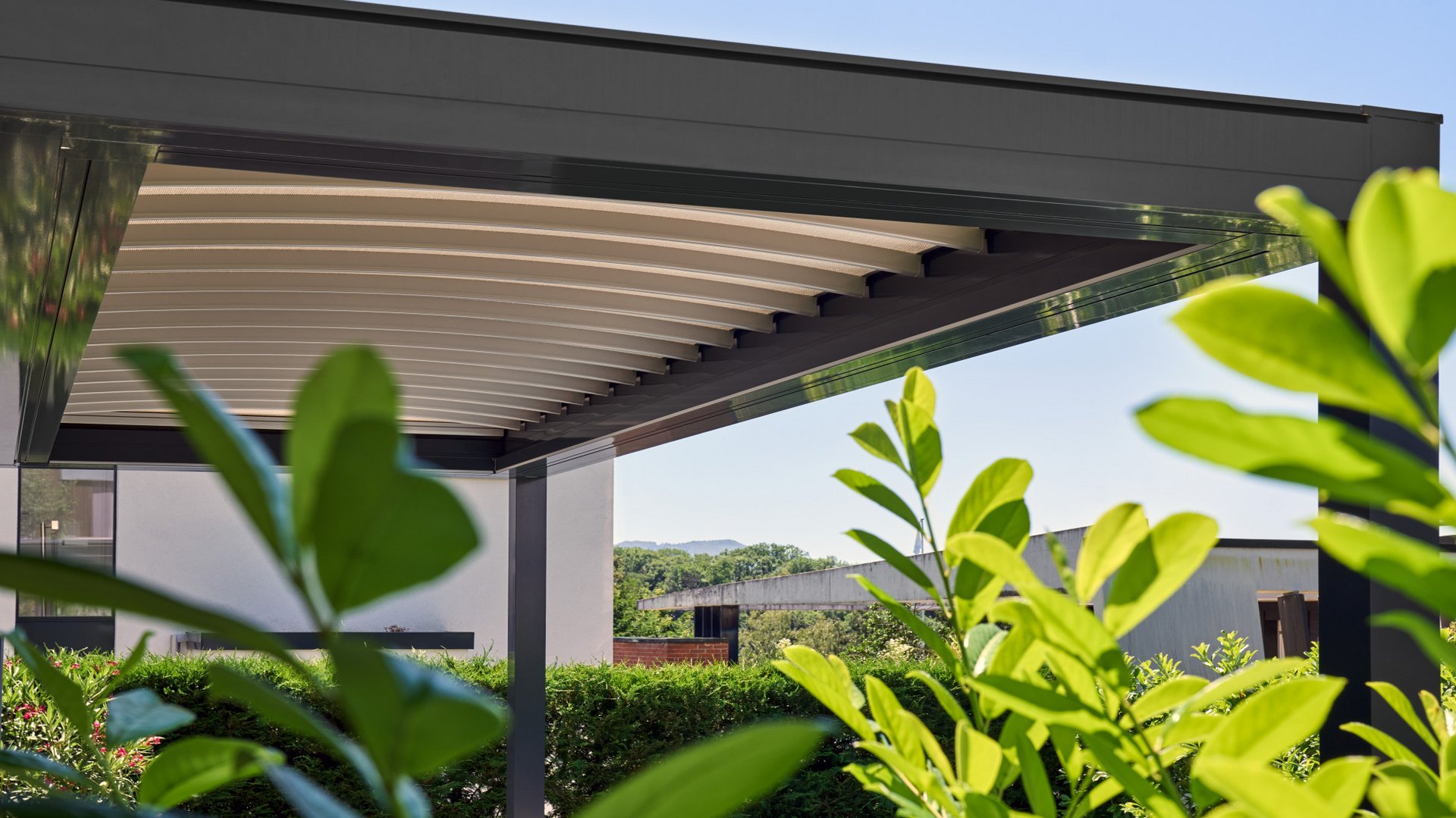 Après des recherches sur Internet et sur la recommandation d’une amie, les propriétaires ont contacté les conseillers spécialisés de Schenker Storen. Ils ont recherché avec ces derniers une solution convenant à la maison-cube. Le choix du maître d’ouvrage s’est rapidement porté sur la pergola toile rétractable FP 7 parce qu’elle satisfait l’option du toit flexible et s’adapte à l’architecture du logis tant sur le plan des dimensions que du design et de la couleur.