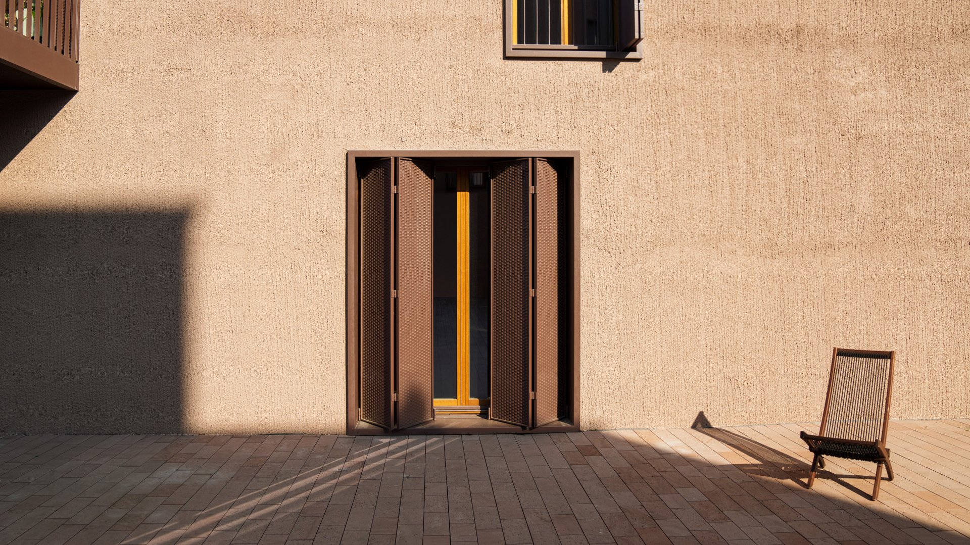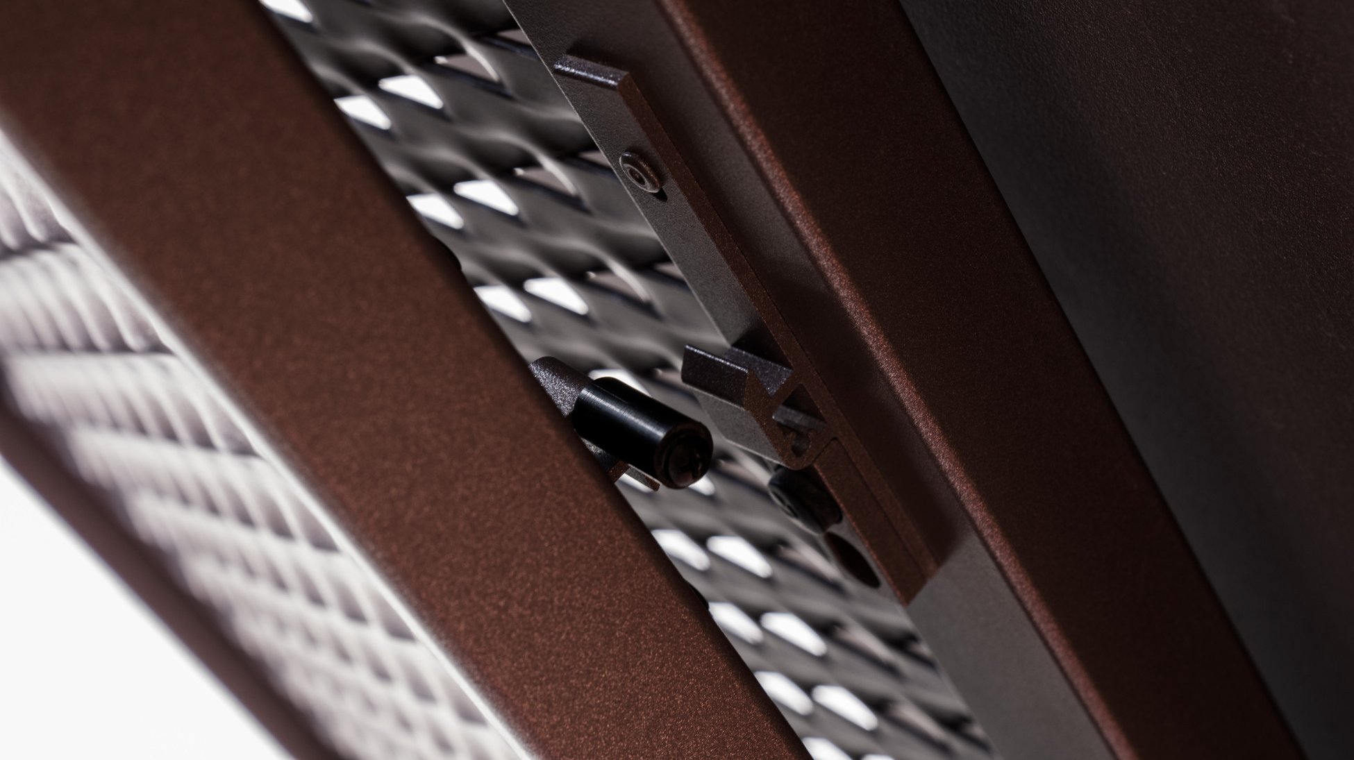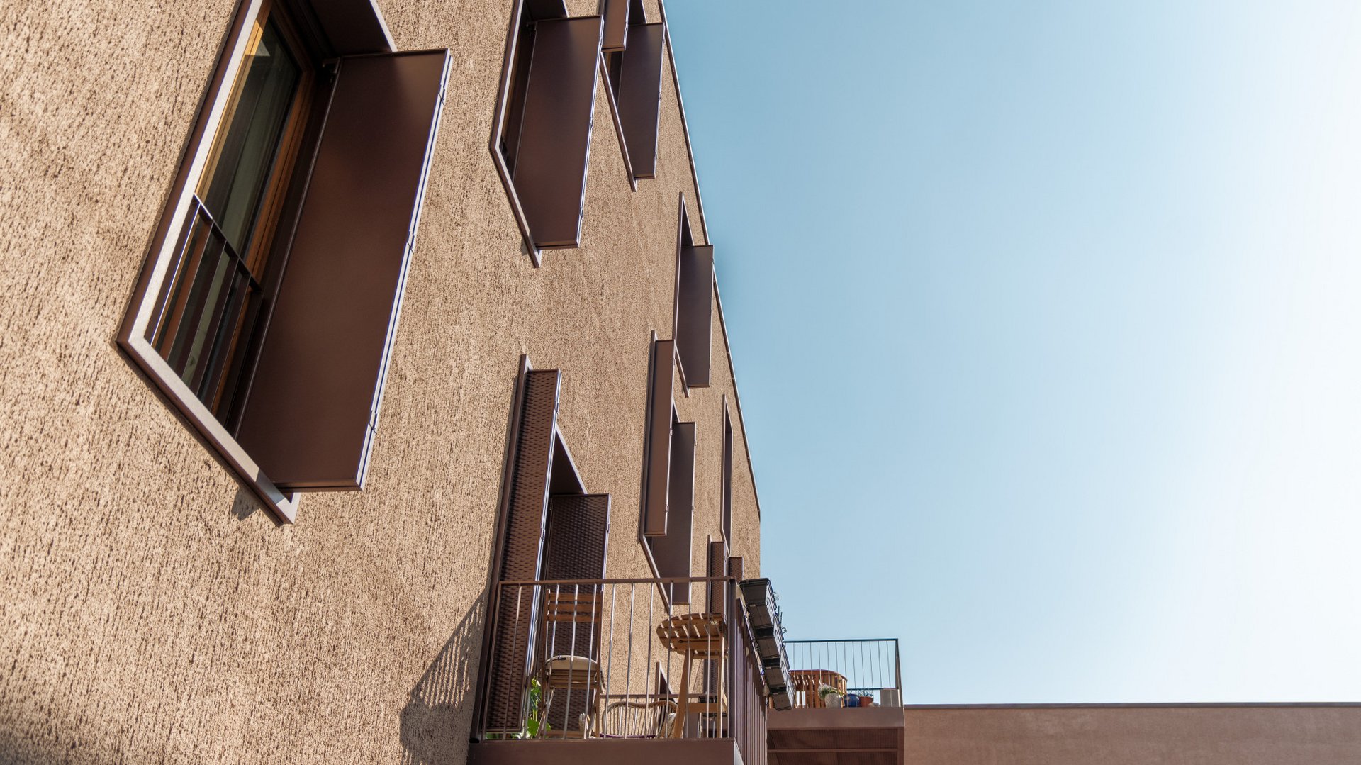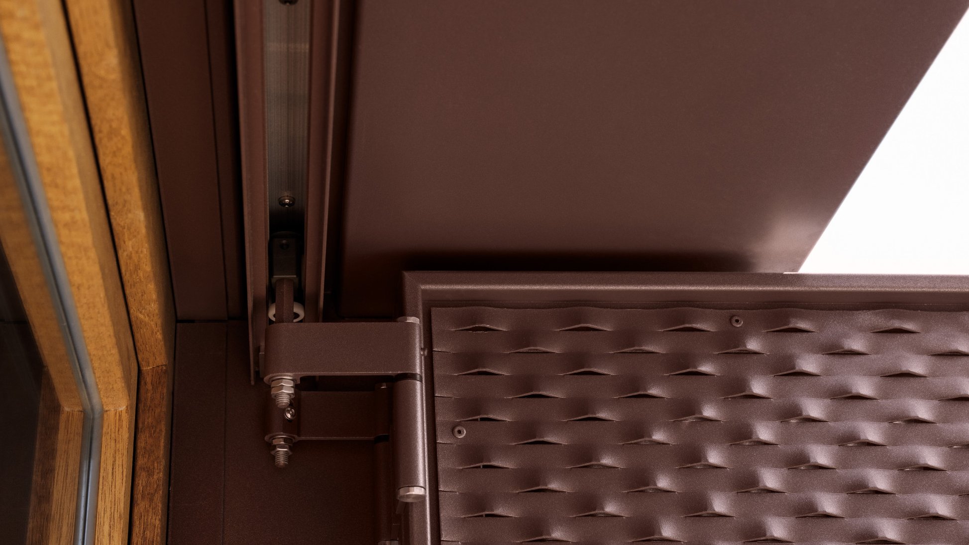 La solution moderne de protection contre le vent, les intempéries et le soleil en aluminium dans la couleur spéciale IGP-classic 591T (ton cuivre) s’ouvre et se ferme aisément comme un accordéon avec un faible rayon d’ouverture et permet un pliage extrêmement peu encombrant dans l’embrasure. Au total, 502 volets coulissants pliables ont été installés, avec un mélange réussi de deux modèles: d’une part un treillis agréablement transparent et d’autre part une panneau en tôle lisse qui assure un obscurcissement complet, spécialement pour les chambres à coucher. Les fines mailles du grillage en métal déployé de 62x25x9,0x2,0 mm répondent non seulement à des exigences esthétiques très élevées, mais assurent aussi un climat intérieur optimal et créent en outre des conditions d’éclairage d’ambiance qui soulignent avec raffinement l’atmosphère des pièces intérieures.