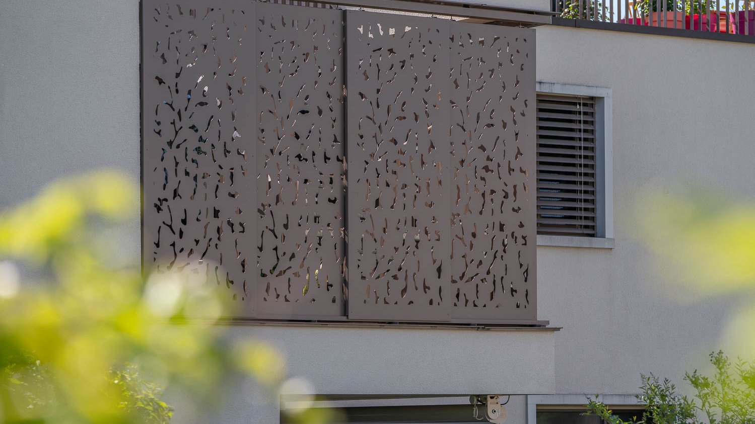 D’une part pour des raisons purement fonctionnelles. Comme ils sont mobiles et faciles à régler, ils protègent non seulement de la pénétration de lumière, mais aussi des regards indiscrets. Le motif de perforations laisse passer assez de lumière même lorsque le volet est fermé, ce qui prévient l’élévation de la température à l’intérieur. D’autre part, c’est leur esthétique qui m’a plu. Ils s’intègrent harmonieusement à la façade sous forme de détail élégant et lui confèrent une identité visuelle autonome et inimitable.