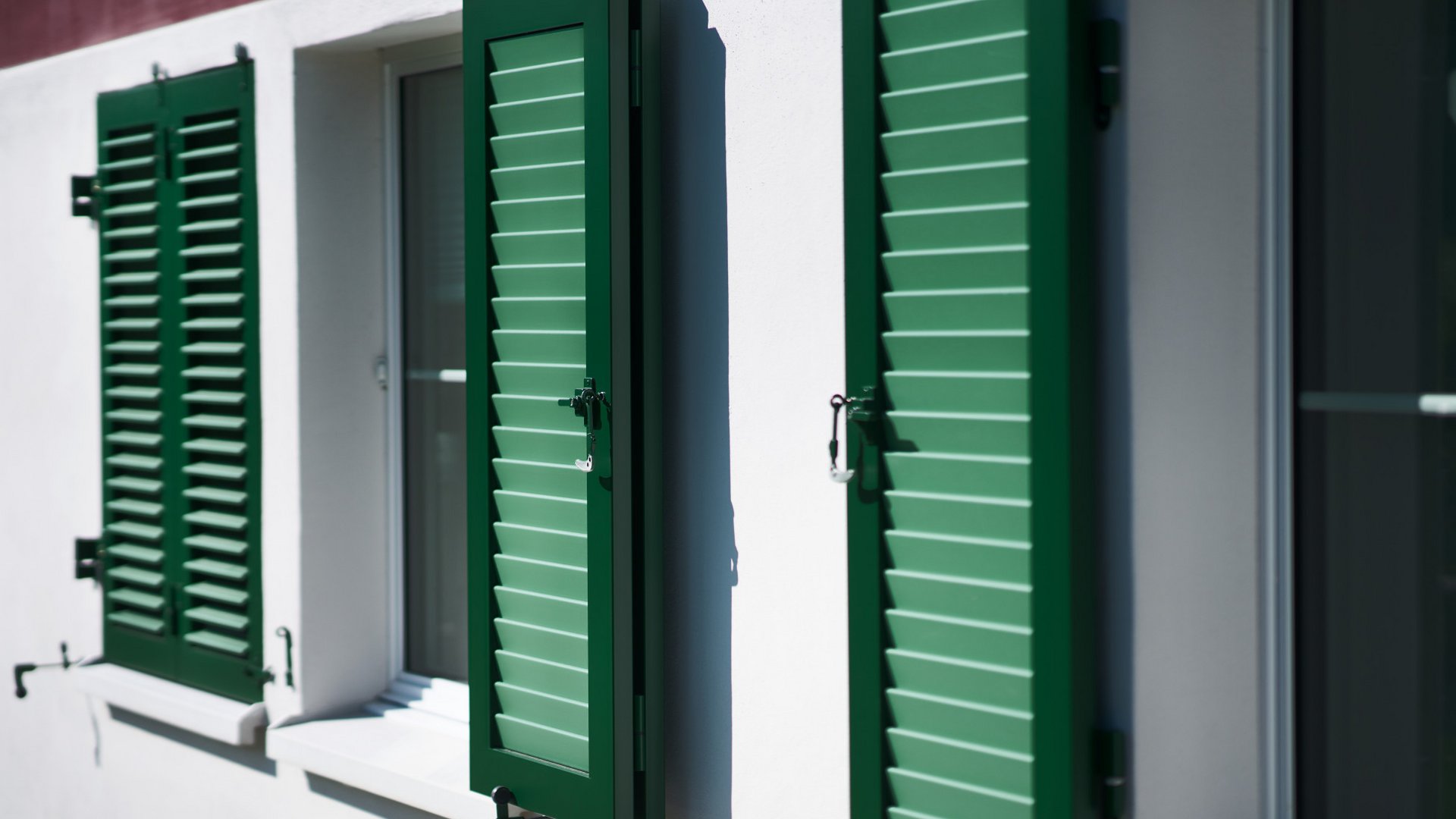 Comme la taille et l’emplacement exacts des fenêtres ne pouvaient être connus qu’une fois la façade achevée, il a fallu attendre avant de commander les volets sur mesure. L’un des défis résidait donc aussi dans le planning et la planification opérationnelle: il fallait en effet s’assurer que les capacités pour la fabrication des volets étaient disponibles au bon moment pour que ces derniers puissent être fabriqués, thermolaqués, livrés le plus rapidement possible et montés dans les délais. La commande totale portait sur 45 volets en aluminium, bicolores, avec des panneaux pleins au lieu de lamelles.