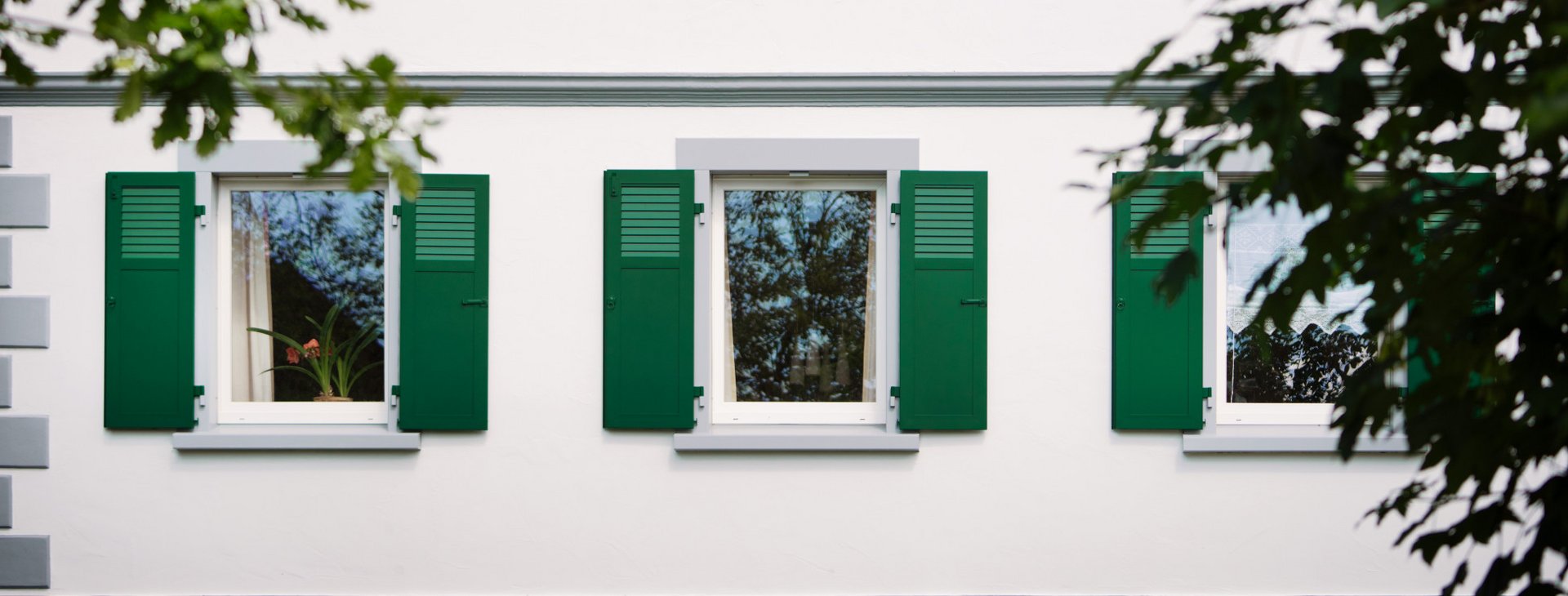 Les volets battants ne se contentent pas de jouer un rôle fonctionnel. Outre la protection contre le soleil, l’éblouissement et les regards indiscrets grâce à une multitude d’options de conception, ils jouent également un rôle important en matière d’esthétique individuelle. Les volets battants conviennent dans les styles architecturaux les plus variés en tant qu’éléments décoratifs de premier ordre. Nous pouvons également les fabriquer en fonction de vos souhaits concernant la forme, la couleur et la garniture.
