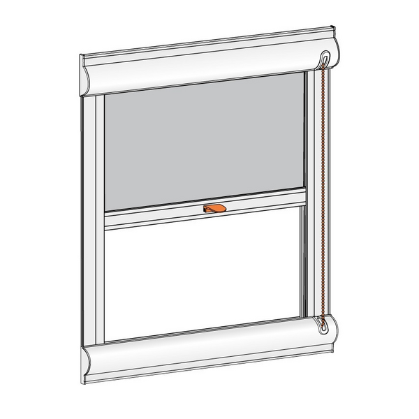 Dans la variante intégrée à la fenêtre, les rollos recouvrent la totalité de la surface de la fenêtre. Le cadre de la fenêtre est entièrement couvert par les coulisses latérales et la cassette, si bien que la fenêtre est intégralement obscurcie par une toile opaque. Les rollos SKID conviennent eux aussi pour un montage sur la parclose.
