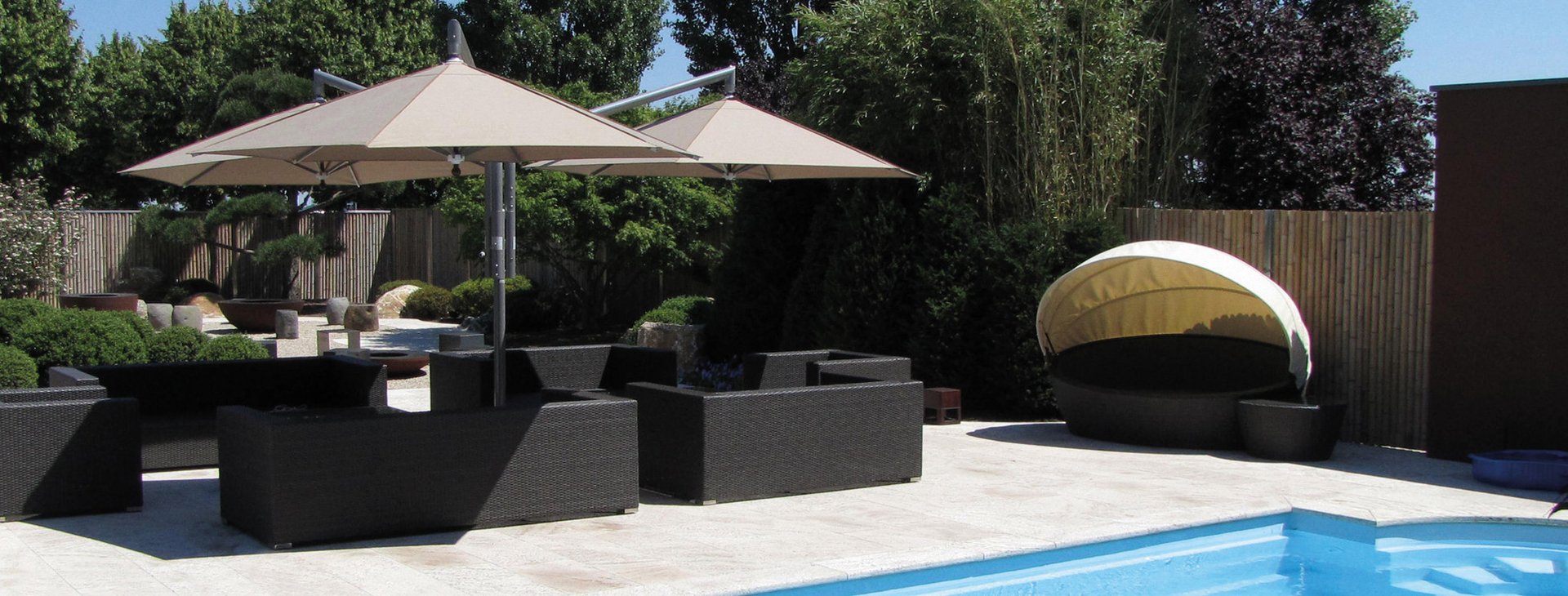 Le parasol déporté Rialto est conçu pour tous ceux qui pensent grand. Son mât excentré crée sous la toile des espaces où l’on peut se mouvoir librement et permet d’ombrager de grandes surfaces sans entrave. Il est possible, grâce à son système modulaire, de regrouper plusieurs parasols, ce qui le rend idéal pour protéger les endroits où il faut utiliser de manière efficace de grandes surfaces.