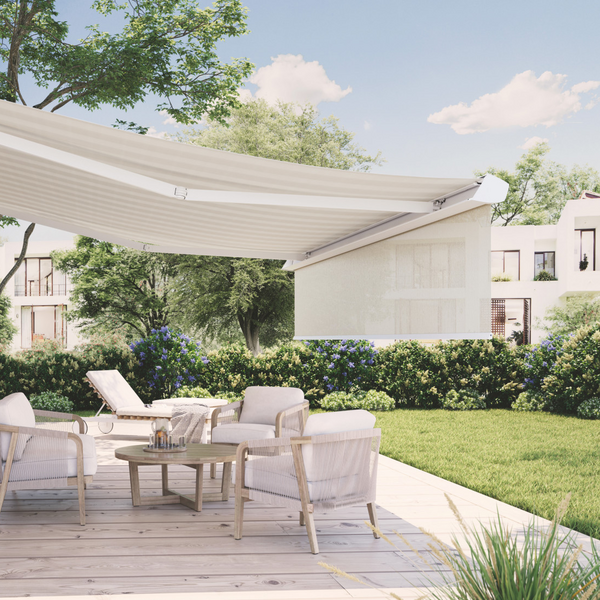 Une multitude d’options sont disponibles pour la marquise à cassette cubique pour que le produit puisse être adapté de manière optimale à vos exigences et à vos souhaits. De nombreux designs de tissu et une vaste palette de couleurs de cadre vous aident à concevoir des terrasses, des balcons et des terrasses couvertes attrayants. Pour plus de confort, il est possible de commander nos produits grâce à nos solutions Smart Home intelligentes. Notre vaste gamme de capteurs garantit une utilisation sûre et adaptée au produit en présence de soleil, de vent et de pluie. Toujours au rendez-vous: la qualité suisse.