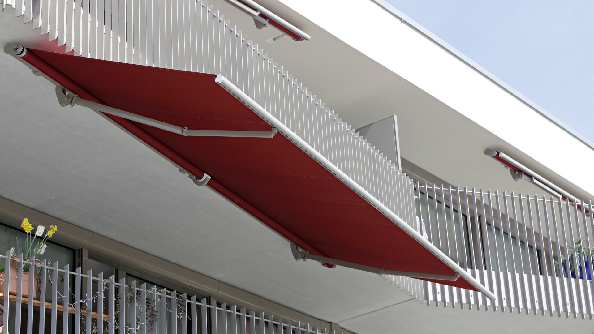 Une multitude d’options sont disponibles pour la marquise normalisée pour que le produit puisse être adapté de manière optimale à vos exigences et à vos souhaits. De nombreux designs de tissu et une vaste palette de couleurs de cadre vous aident à concevoir des terrasses, des balcons et des terrasses couvertes attrayants. Pour plus de confort, il est possible de commander nos produits grâce à nos solutions Smart Home intelligentes. Notre vaste gamme de capteurs garantit une utilisation sûre et adaptée au produit en présence de soleil, de vent et de pluie. Toujours au rendez-vous: la qualité suisse.