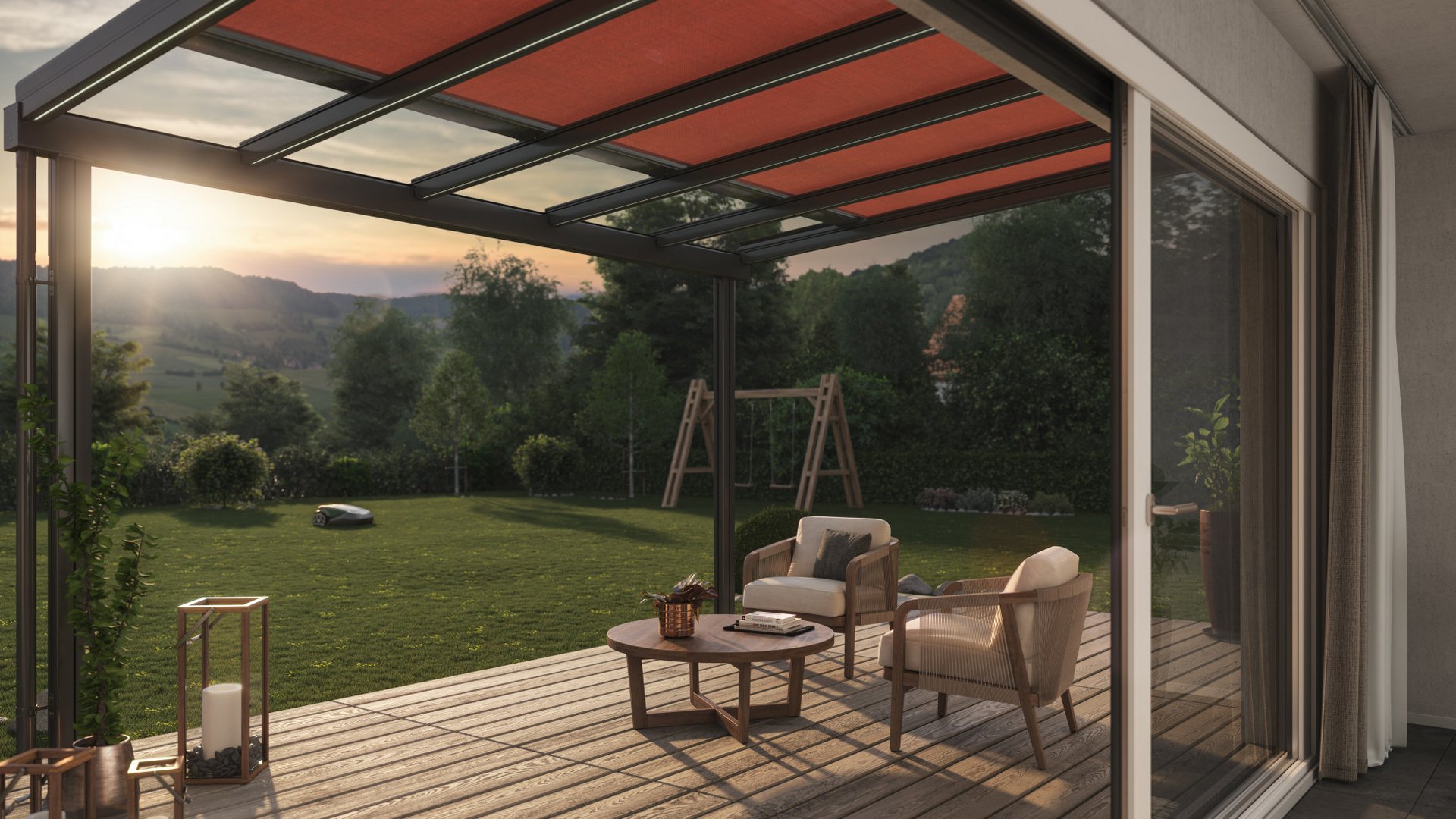 Une multitude d’options sont disponibles pour notre toit de terrasse pour que le produit puisse être adapté de manière optimale à vos exigences et à vos souhaits. De nombreux designs de tissu et une vaste palette de couleurs de cadre vous aident à concevoir des terrasses, des balcons et des terrasses couvertes attrayants. Pour plus de confort, il est possible de commander nos produits grâce à nos solutions Smart Home intelligentes. Notre vaste gamme de capteurs garantit une utilisation sûre et adaptée au produit en présence de soleil, de vent et de pluie. Toujours au rendez-vous: la qualité suisse.