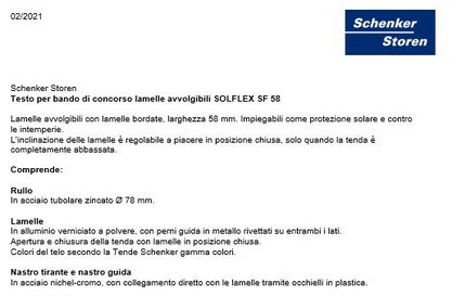 Testo per bando di concorso lamelle avvolgibili SOLFLEX SF 58