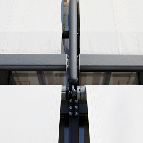 La raffinata tenda per facciata ombreggia in modo ottimale anche tetti e facciate con superfici vetrate di grandi dimensioni e convince grazie alla sua robusta struttura e alla lunga durata. Che le superfici siano verticali, oblique oppure orizzontali, la tenda per facciata è adatta a ogni situazione.