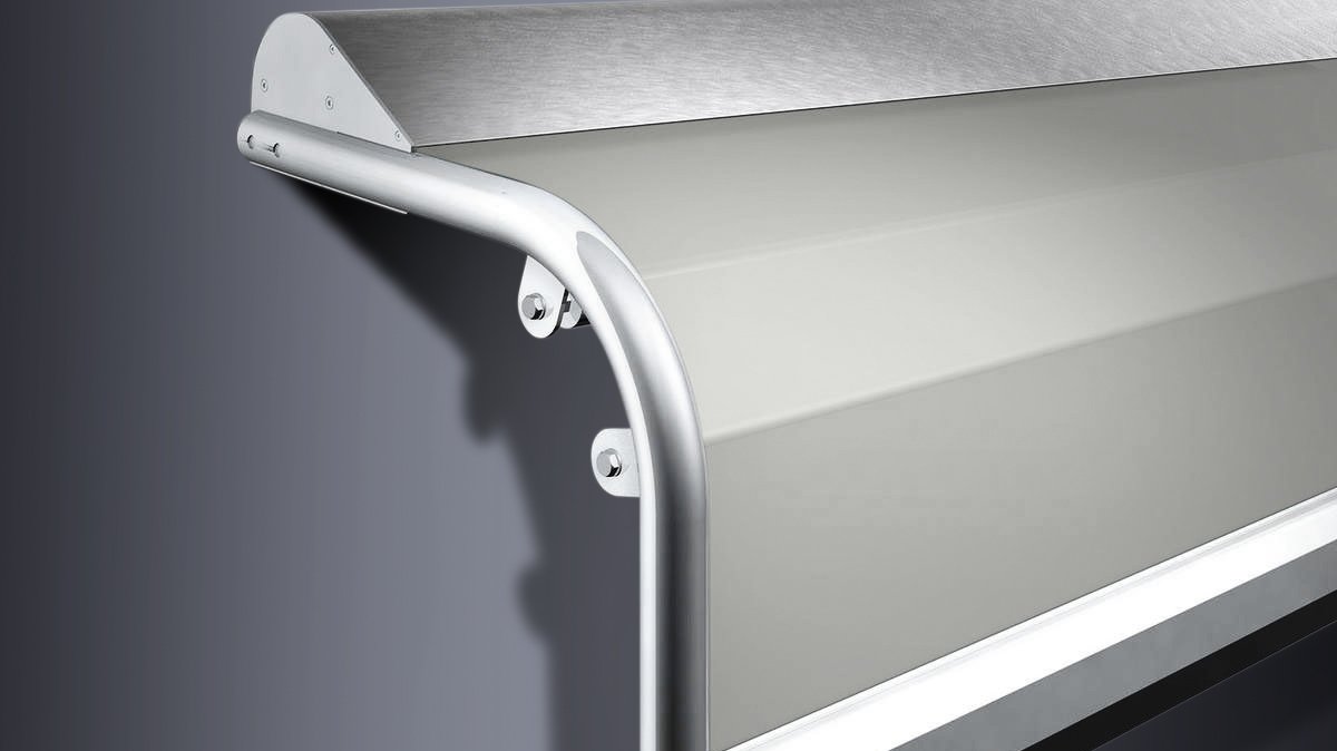 La nostra FM 150 senza azionamento di contromarcia è particolarmente adatta per l’ombreggiamento verticale di grandi finestre. È possibile ombreggiare superfici verticali e oblique senza azionamento di contromarcia – occorre un’inclinazione minima di 45°. In questa versione è possibile accoppiare fino a sei impianti. Il frontalino è rotondo e sale e scende attraverso la guida. Con la FM 150 è possibile realizzare quattro diversi modelli. L’impianto è adatto per il montaggio ad avancorpo, per il quale sono disponibili diversi tipi di tettuccio oppure opzionalmente un cassonetto integrato.