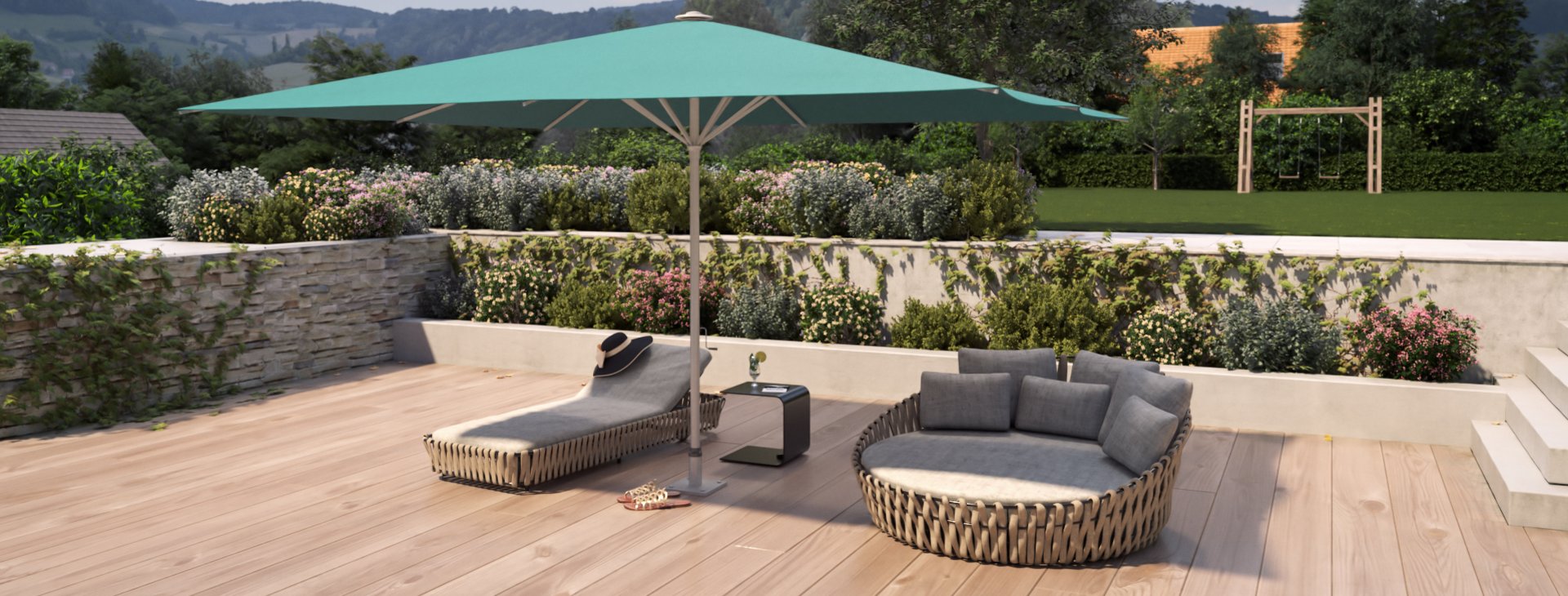 Con il nostro ombrellone a palo centrale Filius l’ombreggiamento a regola d’arte in terrazza, in giardino o sul balcone diventa un gioco da ragazzi. Grazie alla sua leggerezza e maneggevolezza, è ideale per l’impiego nei caffè con tavolini all’aperto, dove sono richiesti un montaggio e uno smontaggio quotidiano e un utilizzo decorativo. Filius è disponibile in molteplici versioni e dimensioni, in modo da rispondere a tutte le vostre esigenze individuali. Potete scegliere tra una grande varietà di pregiati tessuti e colori, il design è sobrio ed esteticamente ben si adatta in modo armonioso all’aspetto generale dell’ambiente circostante.