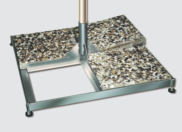 In base alla grandezza, l’ombrellone viene dotato delle corrispondenti fondamenta e della corretta zavorra.
