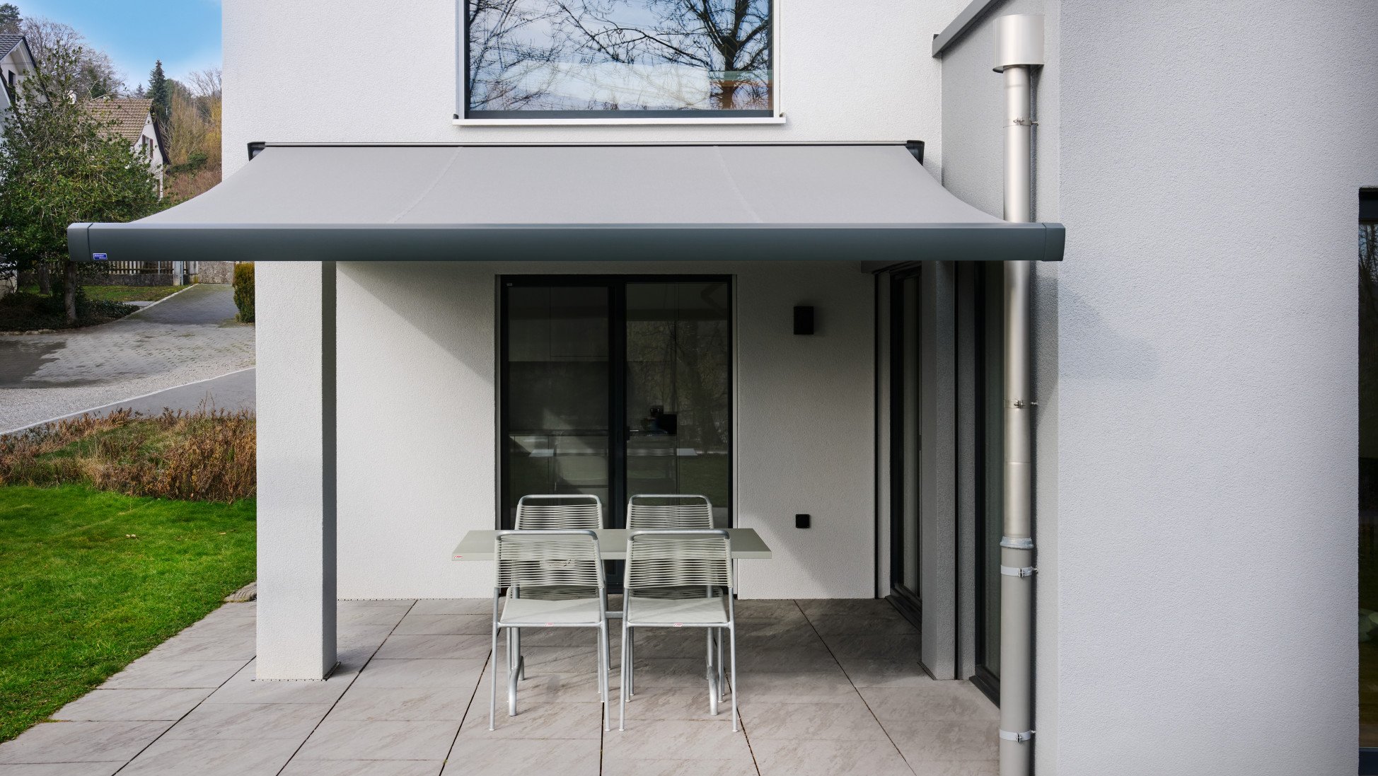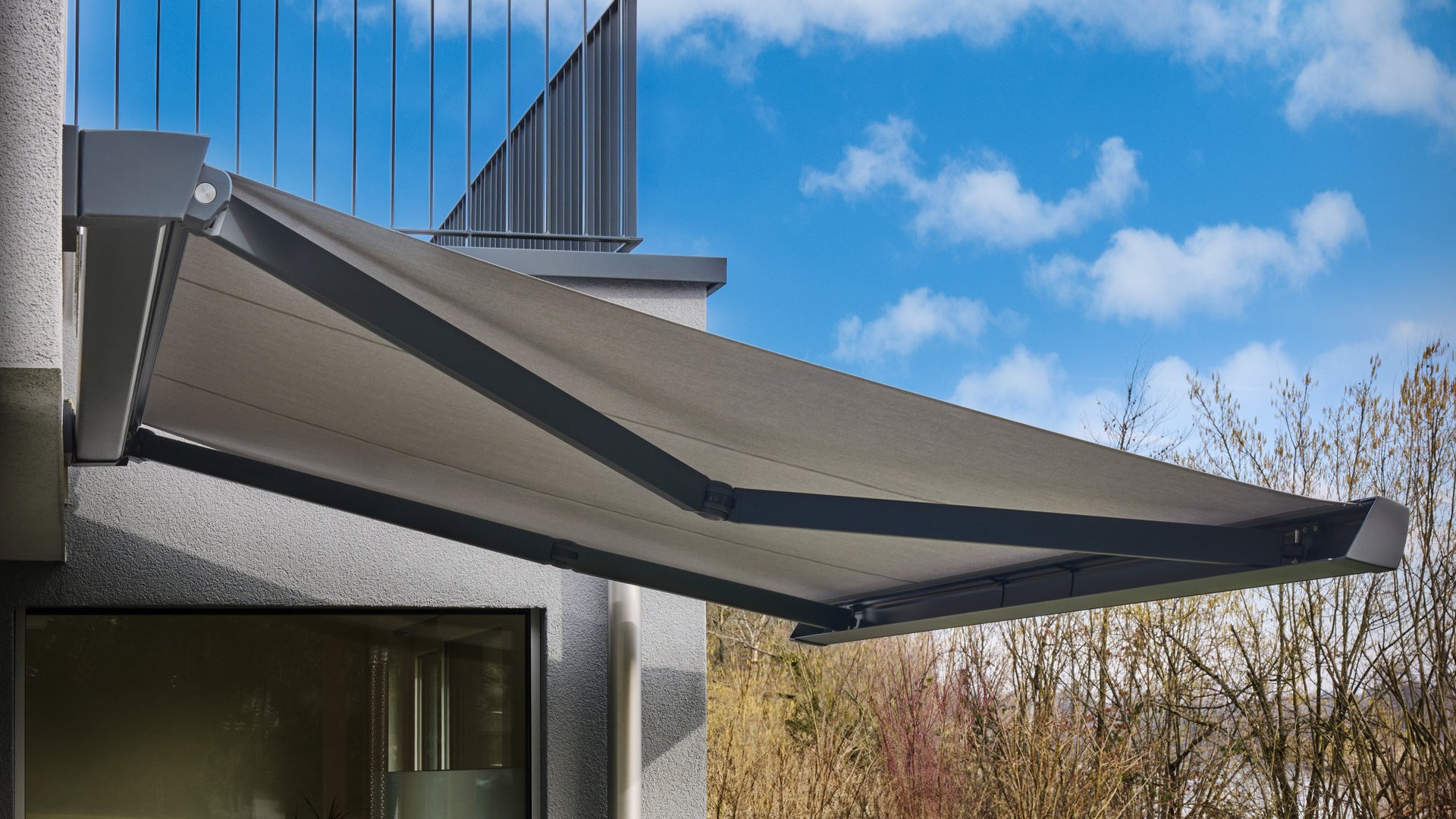 La KKM 7 è il modello per terrazze più grandi. Un impianto singolo permette di raggiungere una larghezza massima di 7 m e una sporgenza massima di 4 m, quindi una superficie di ombreggiamento notevole di 28 m2. Inoltre può essere accoppiata e quindi raggiungere una larghezza massima di 14 m. Quando la tenda è chiusa, il cassonetto della KKM 7 è alto 16,5 cm e profondo 26,1 cm, supporto incluso. Il supporto di sospensione è adattato in modo ottimale alle dimensioni del cassonetto, in modo che sparisca completamente dietro all’elegante cassonetto.