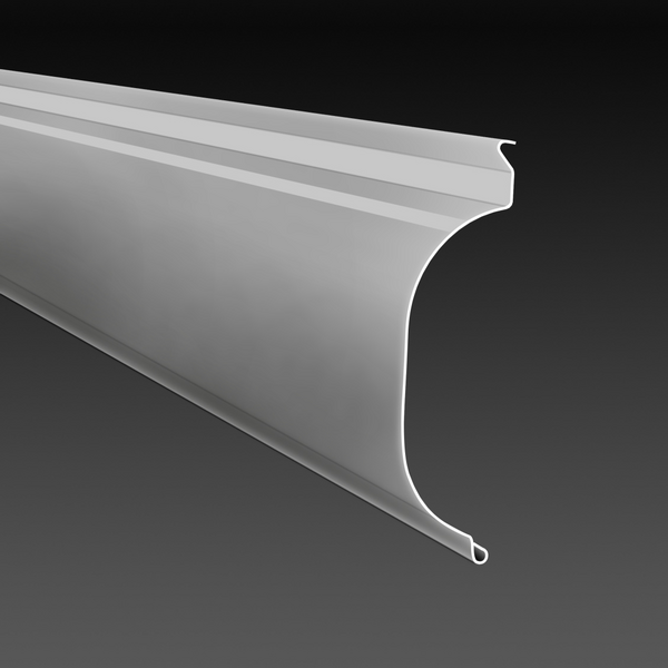 Lamelle tonde progettate per essere resistenti alla piegatura. Larghezza delle lamelle 92 mm e spessore delle lamelle ca. 0,6 mm. Lamelle flangiate con guida su entrambi i lati con labbro antirumore inserito nel profilo. Le lamelle si montano sui due lati con supporti di metallo (bullone di guida) e si fissano con clip di acciaio inox.