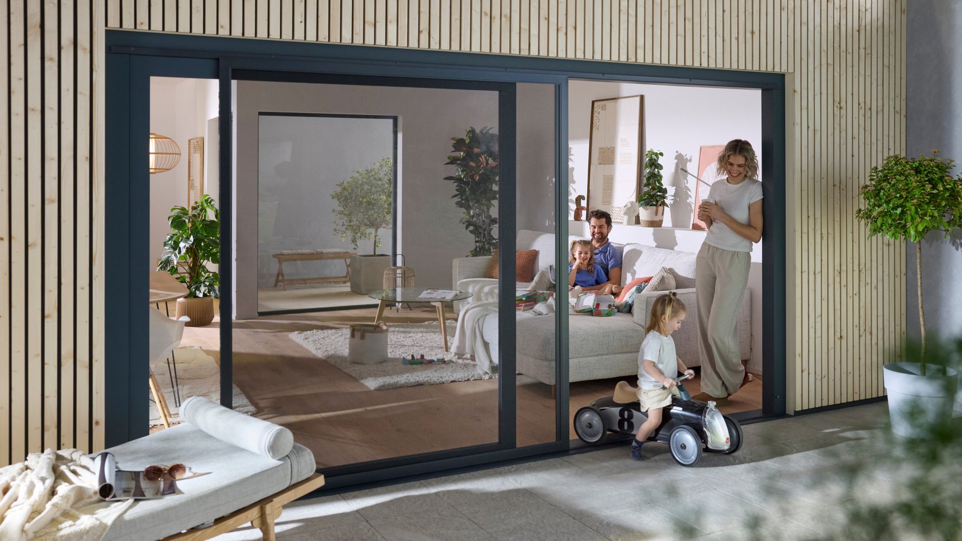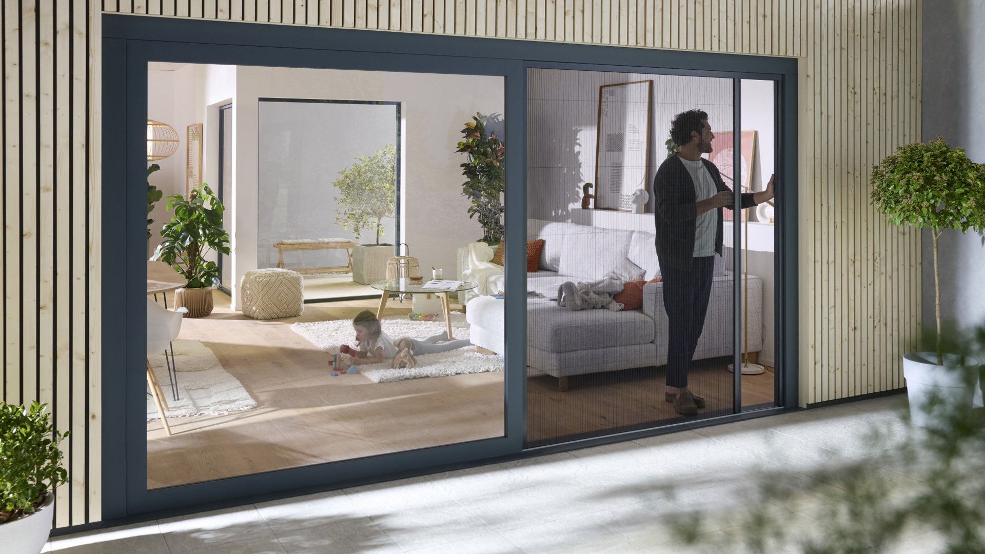 I sistemi di protezione anti-insetti in questa versione si aprono e si chiudono lungo la porta scorrevole. Scivolano in modo eccellente nei binari, frenano dolcemente e assicurano il minimo ingombro. Sono particolarmente adatti per grandi porte scorrevoli sollevabili e inclinabili. Questa versione rende possibile anche un modello a più ante e permette di coprire finestre grandi fino a 20 m2. Il comando è possibile sia dall’interno che dall’esterno.